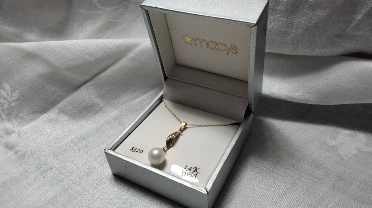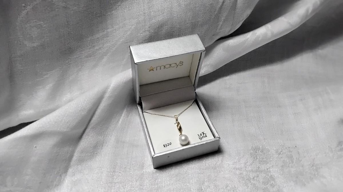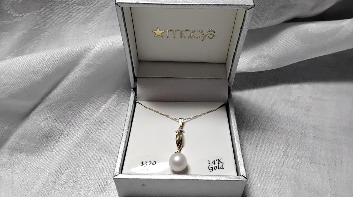 MACY'S 18" 14K Pearl Swirl Dangle Necklace