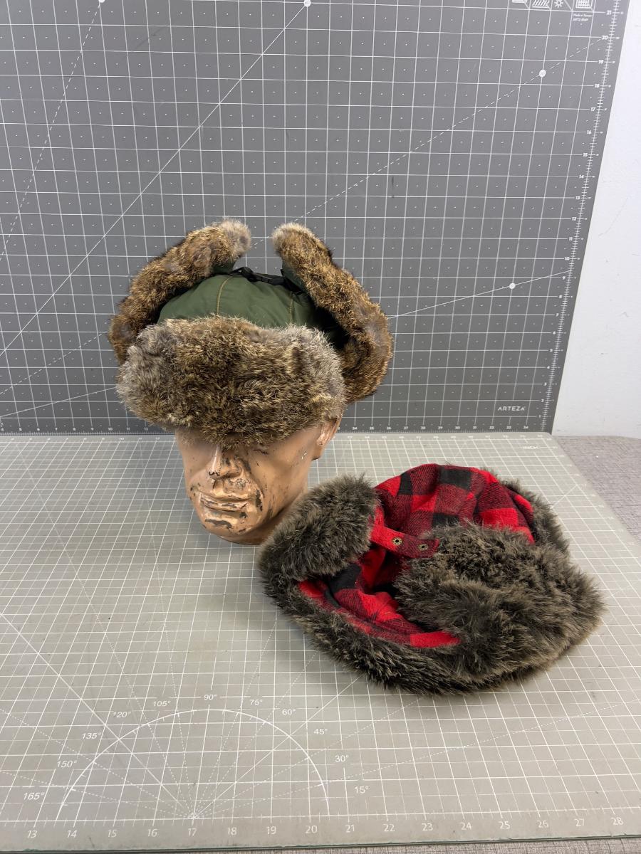 Mad Bomber Fur Lined Trapper Hat +++ But Wait! Bonus Plaid Faux Elmer Fud Hat