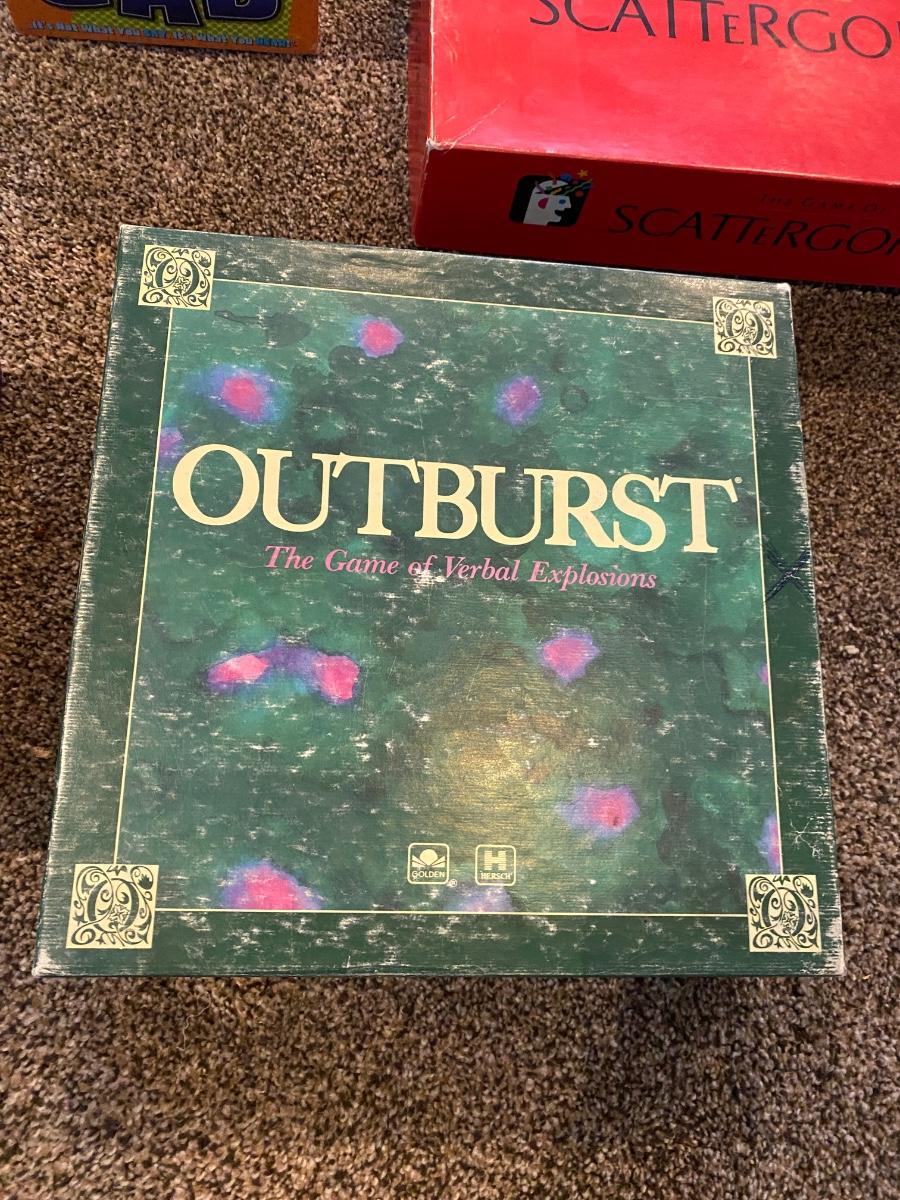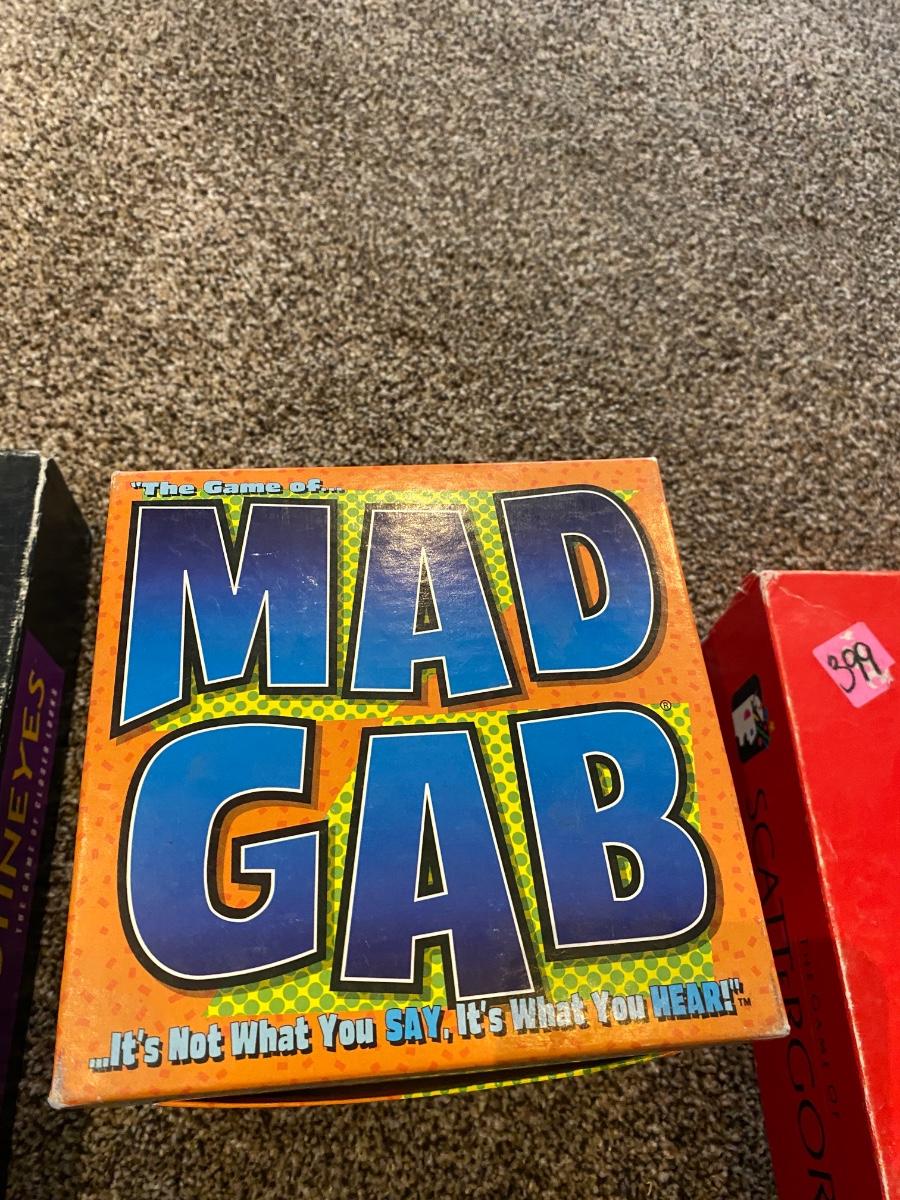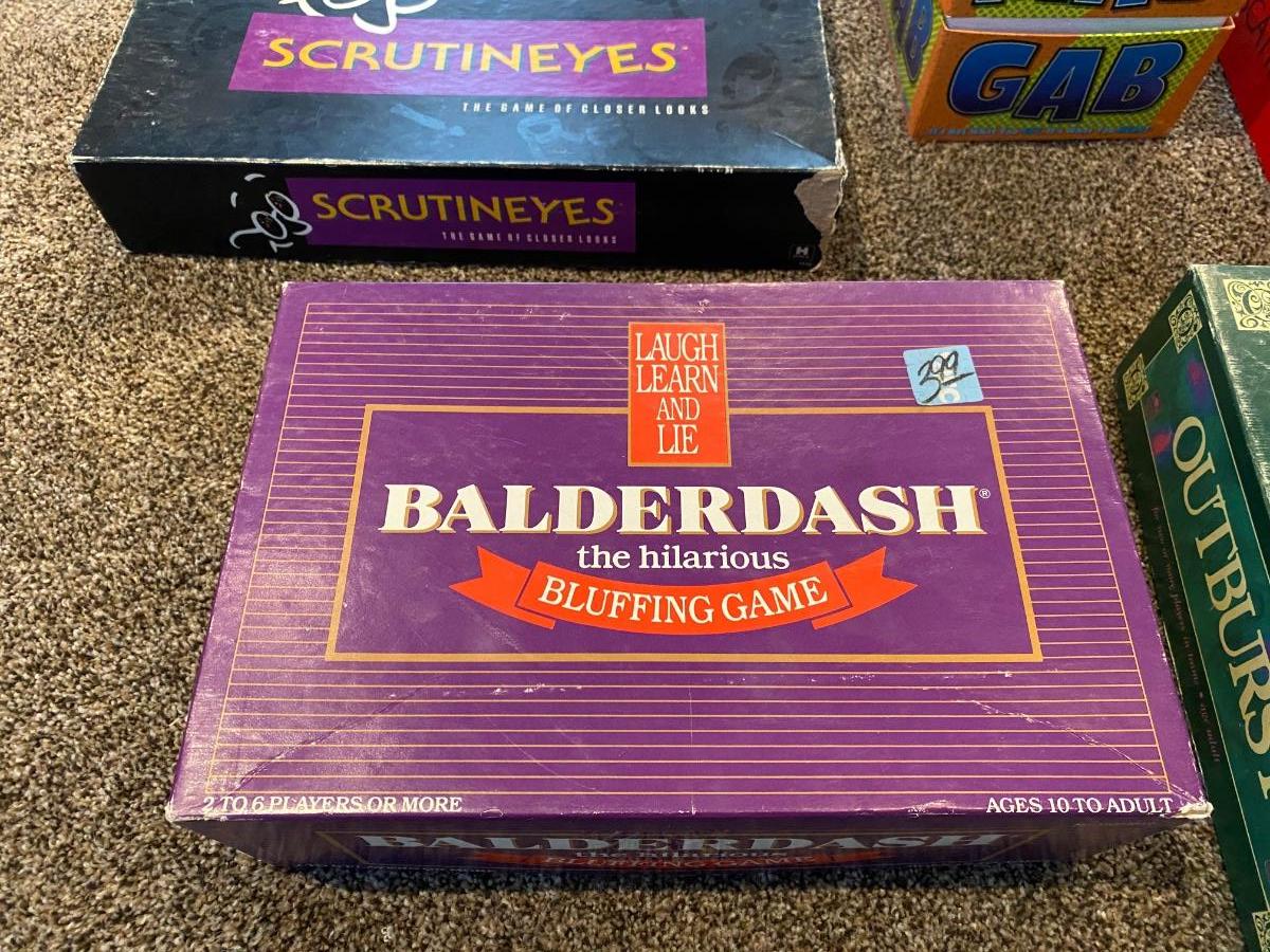 MAD GAB, SCATTERGORIES, OUTBURST, SCRUTINEYES, & BALDERDASH