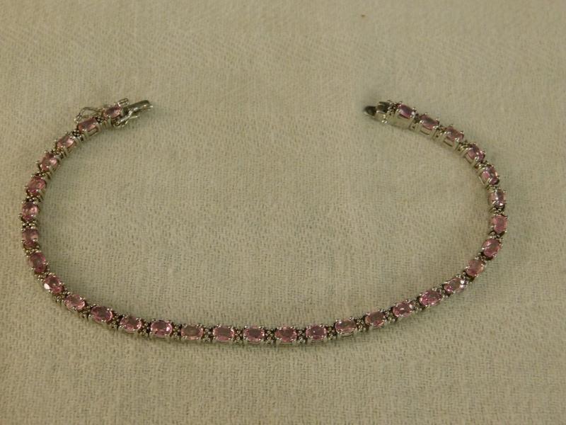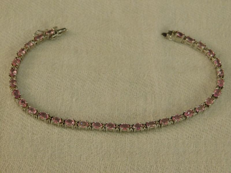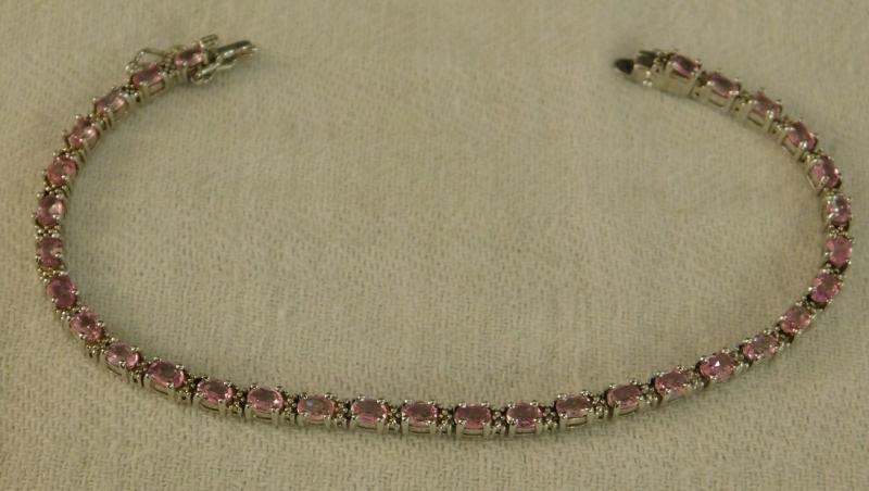 Madagascar Pink Sapphire Tennis 7 1/2" Bracelet Platinum Over Sterling with box closure and double safety latch.