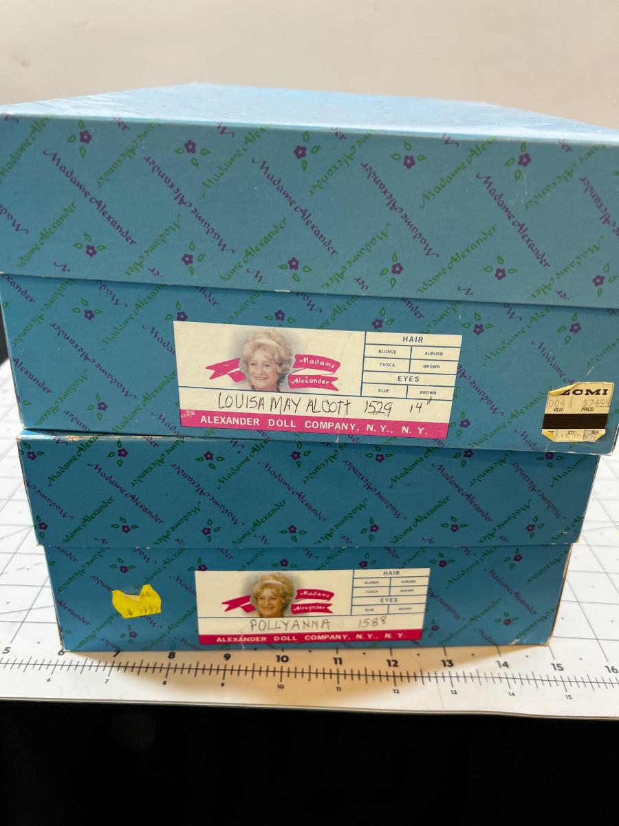 Madam Alexander Dolls (2) 13" Tall Polly Ana and Louisa May Alcott  NEW in the box.
