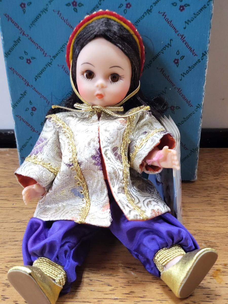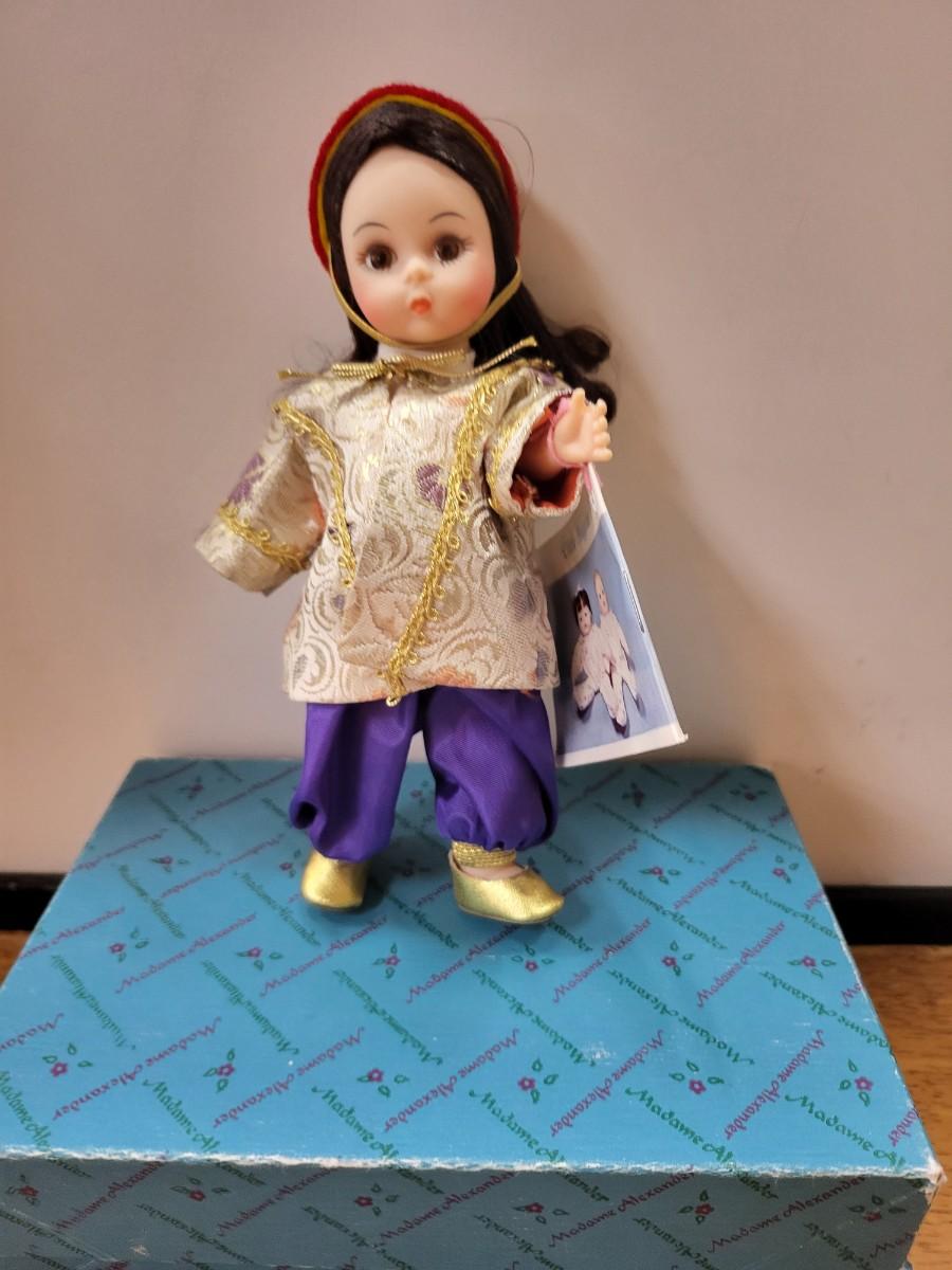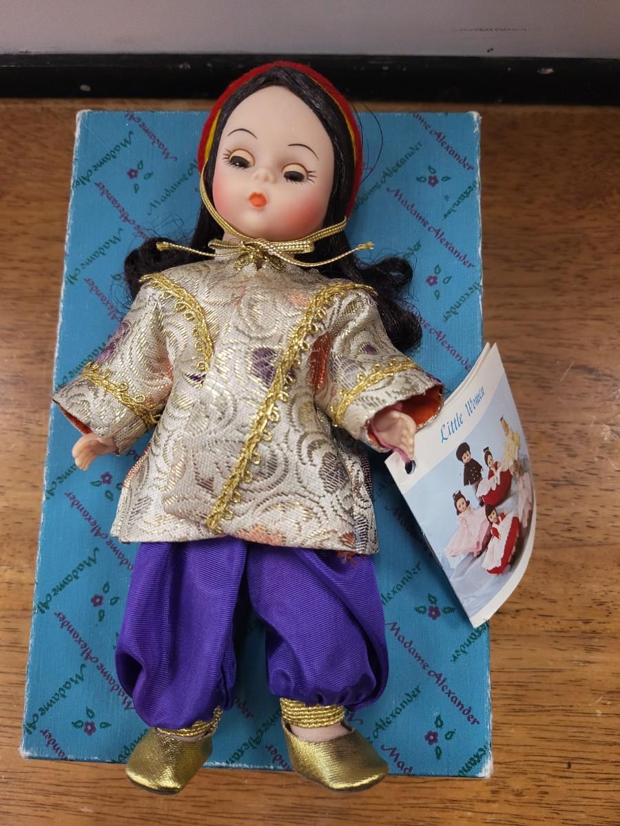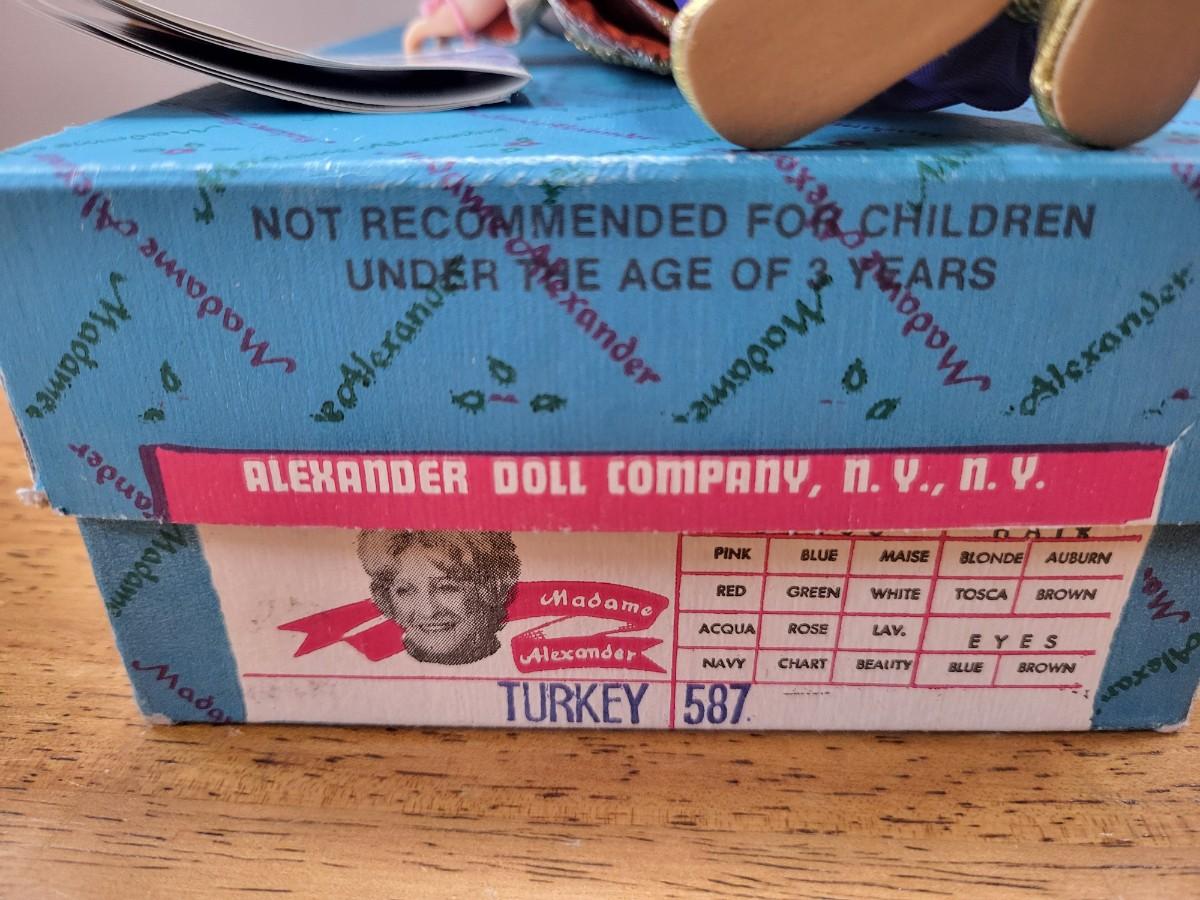 Vintage 7.5" Madame Alexander doll dressed in traditional outfit from Turkey. Doll comes with original box.