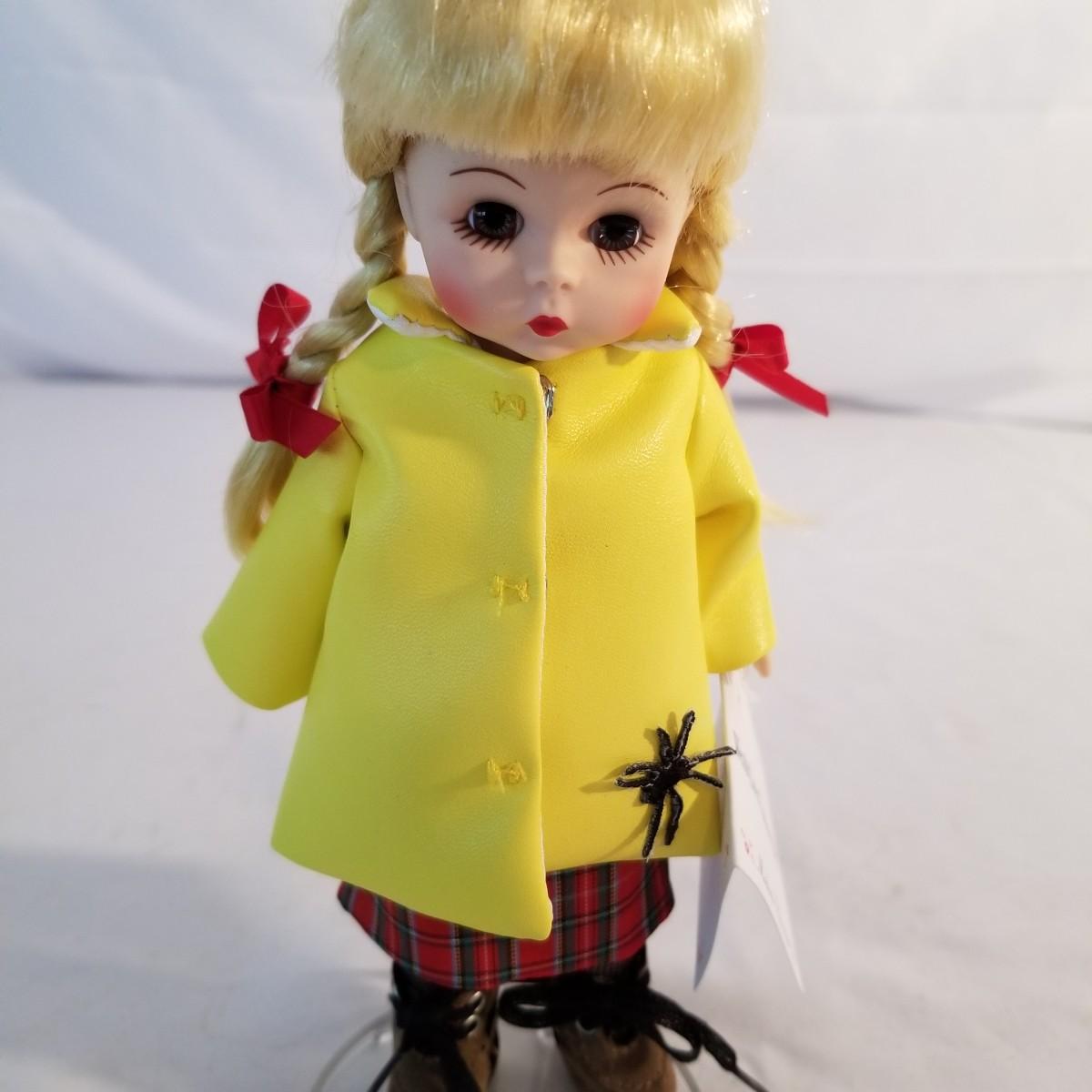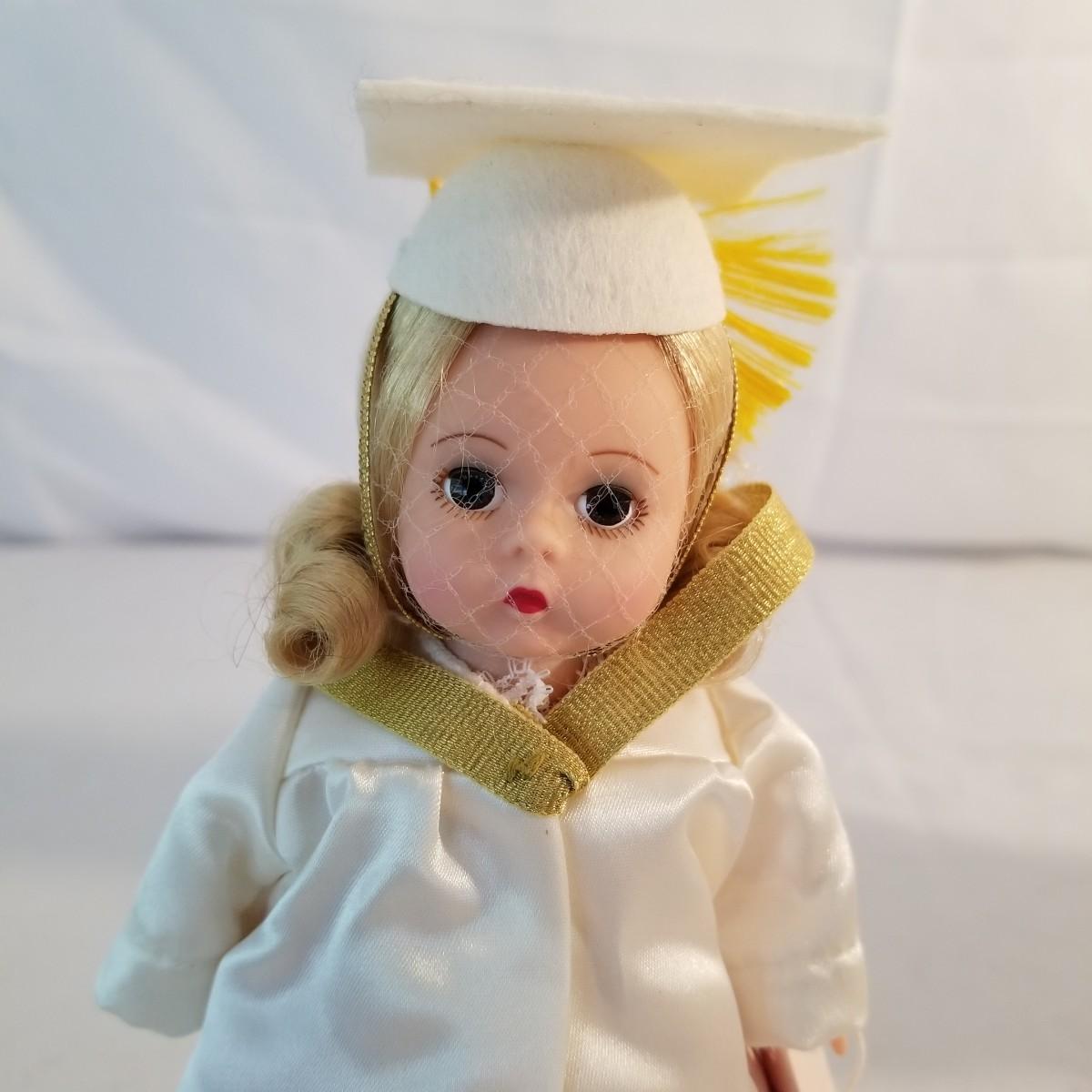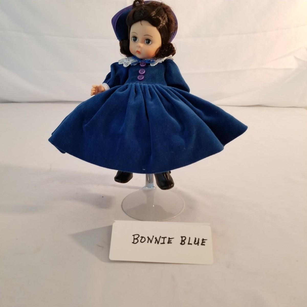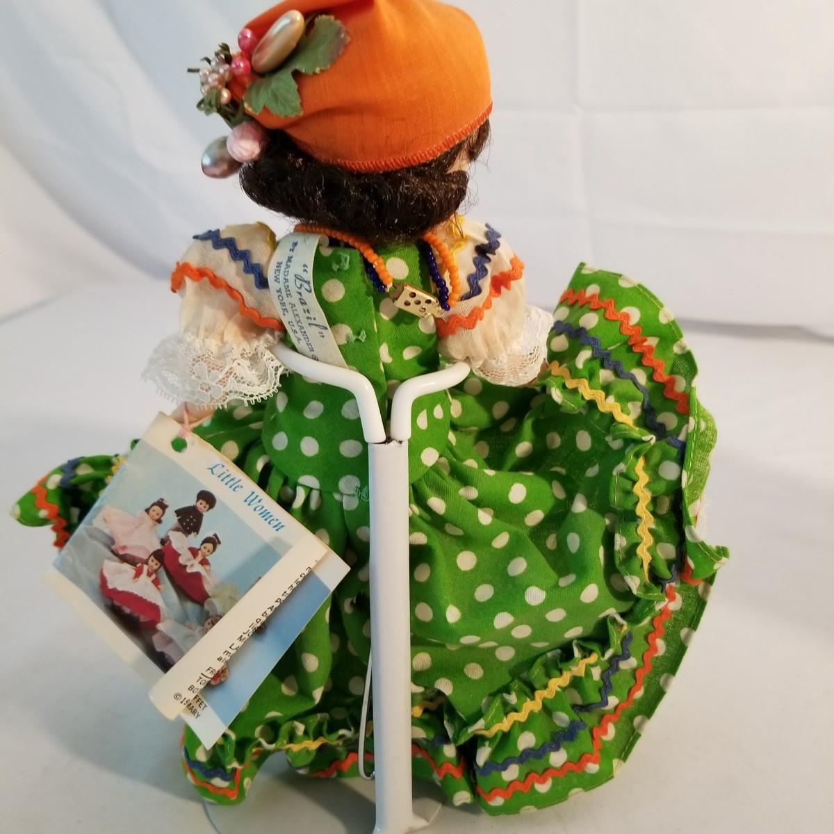 Second lot of Madame Alexander dolls in this auction with nine total dolls in this lot. Most dolls have stands, Pink Candy Store doll does not. Smaller dolls are 8", larger are 13". There are two other lots of Madame Alexander dolls found in this auction. Please see photos for detail. Shipping available.