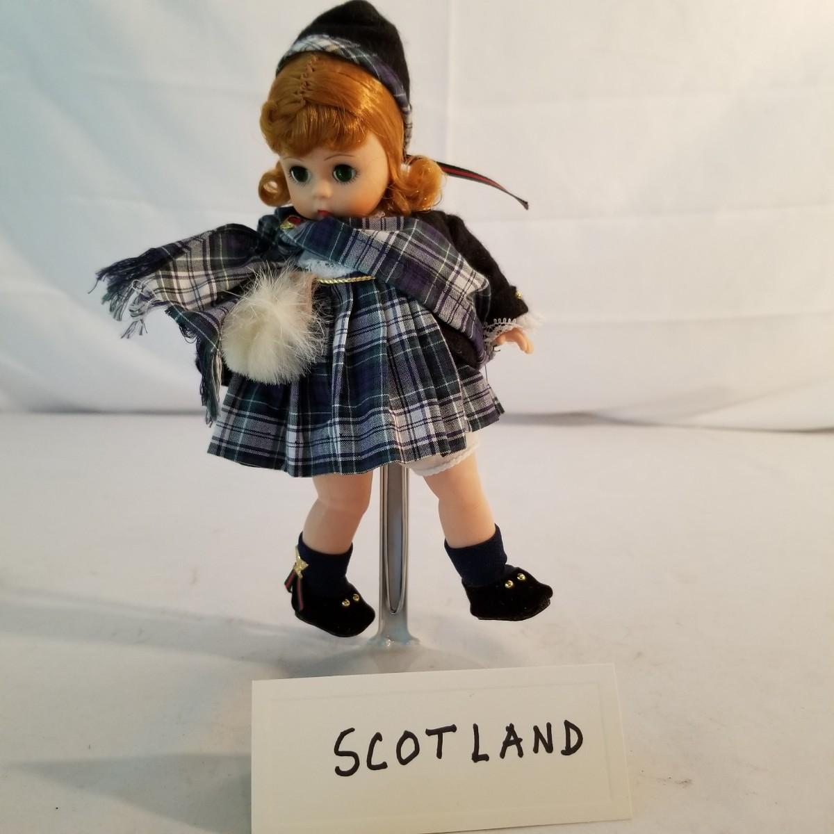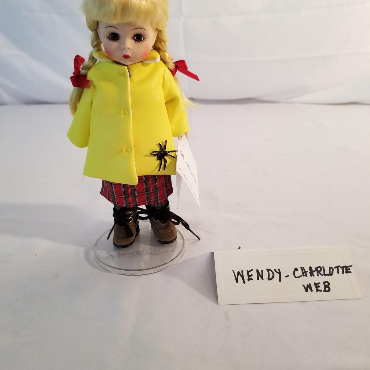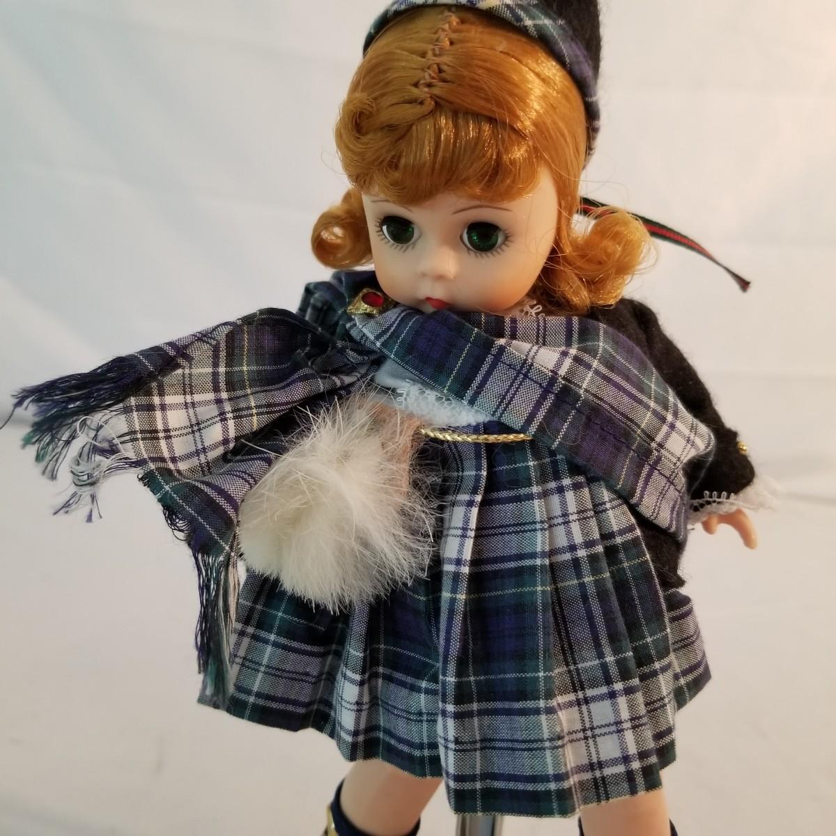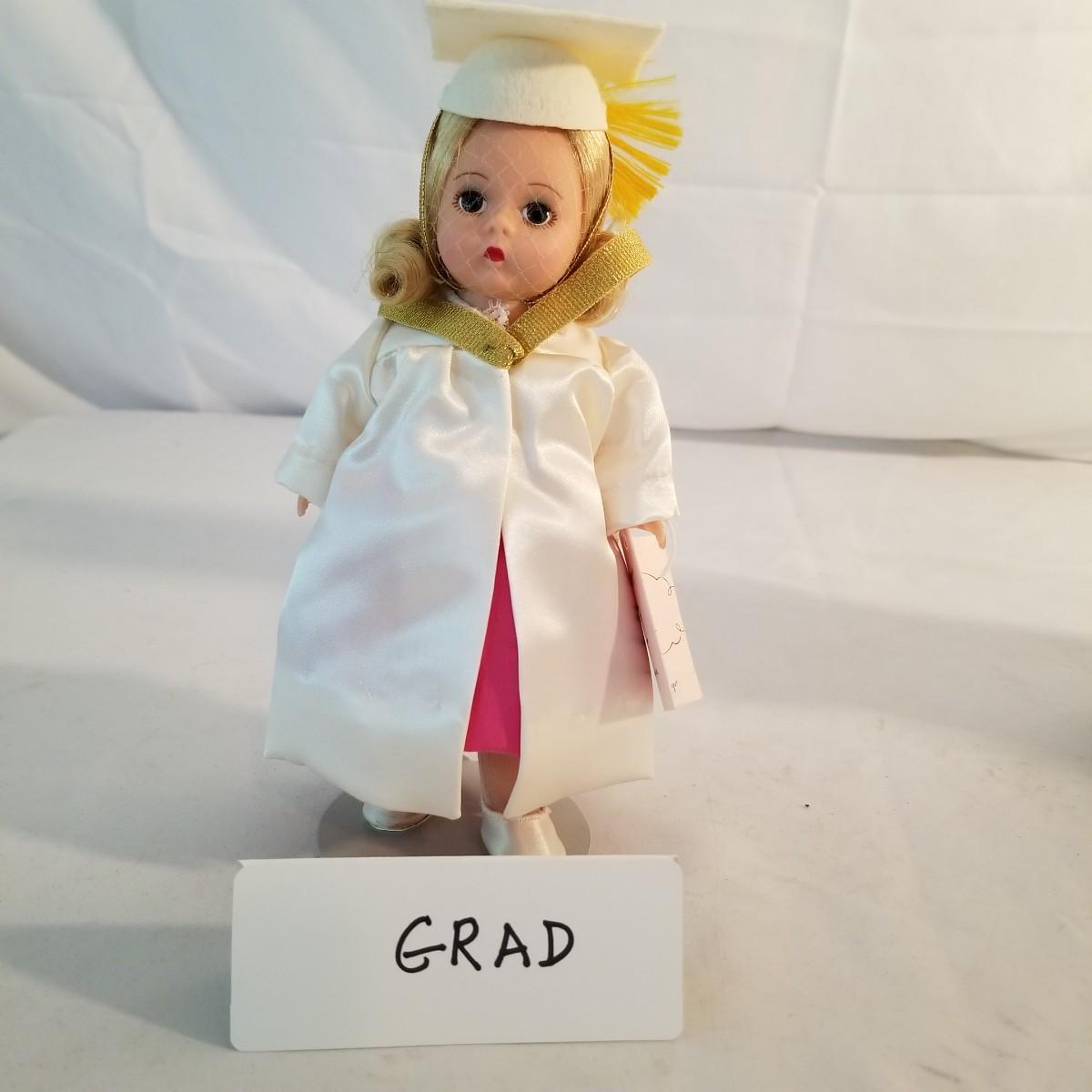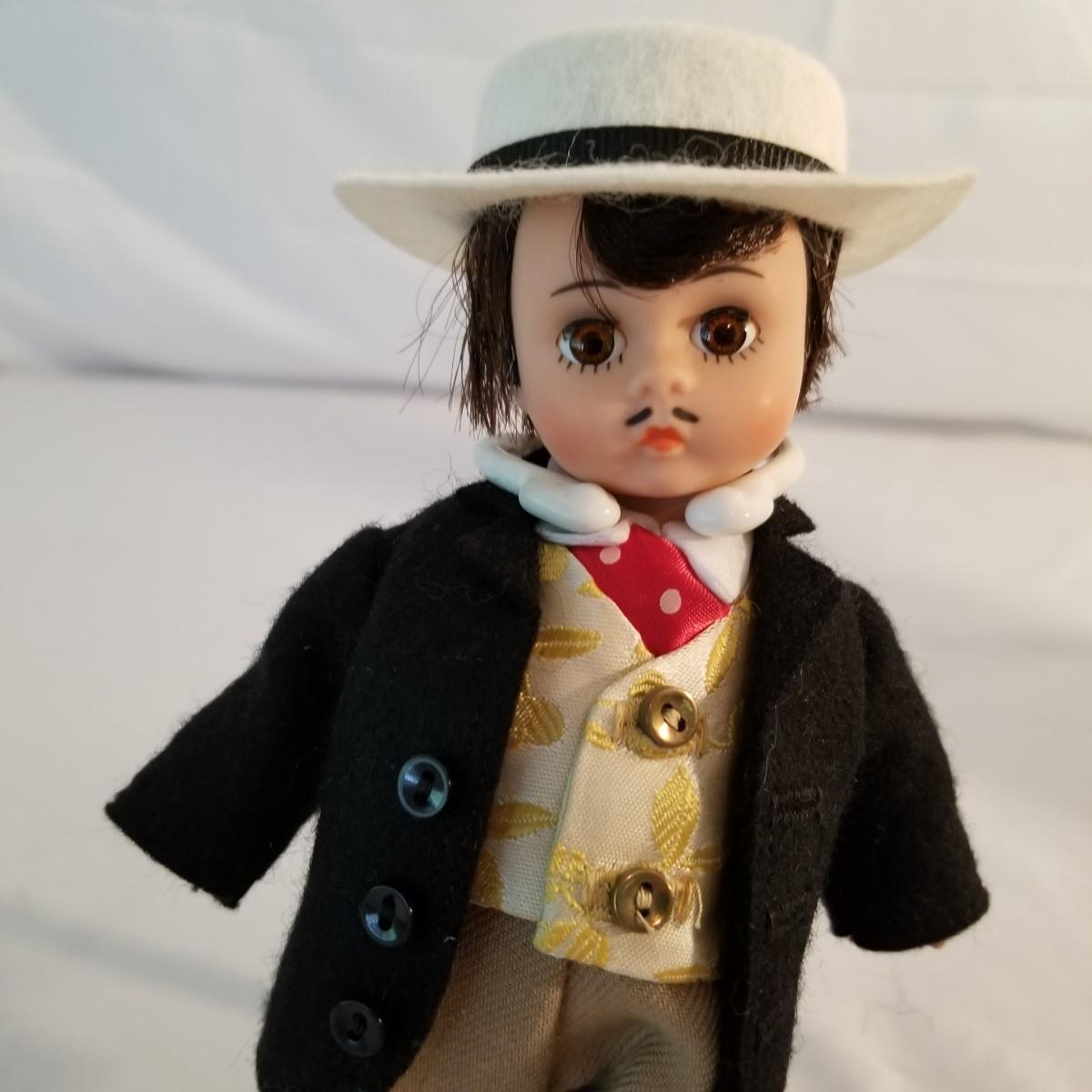Second lot of Madame Alexander dolls in this auction with nine total dolls in this lot. Most dolls have stands, Pink Candy Store doll does not. Smaller dolls are 8", larger are 13". There are two other lots of Madame Alexander dolls found in this auction. Please see photos for detail. Shipping available.