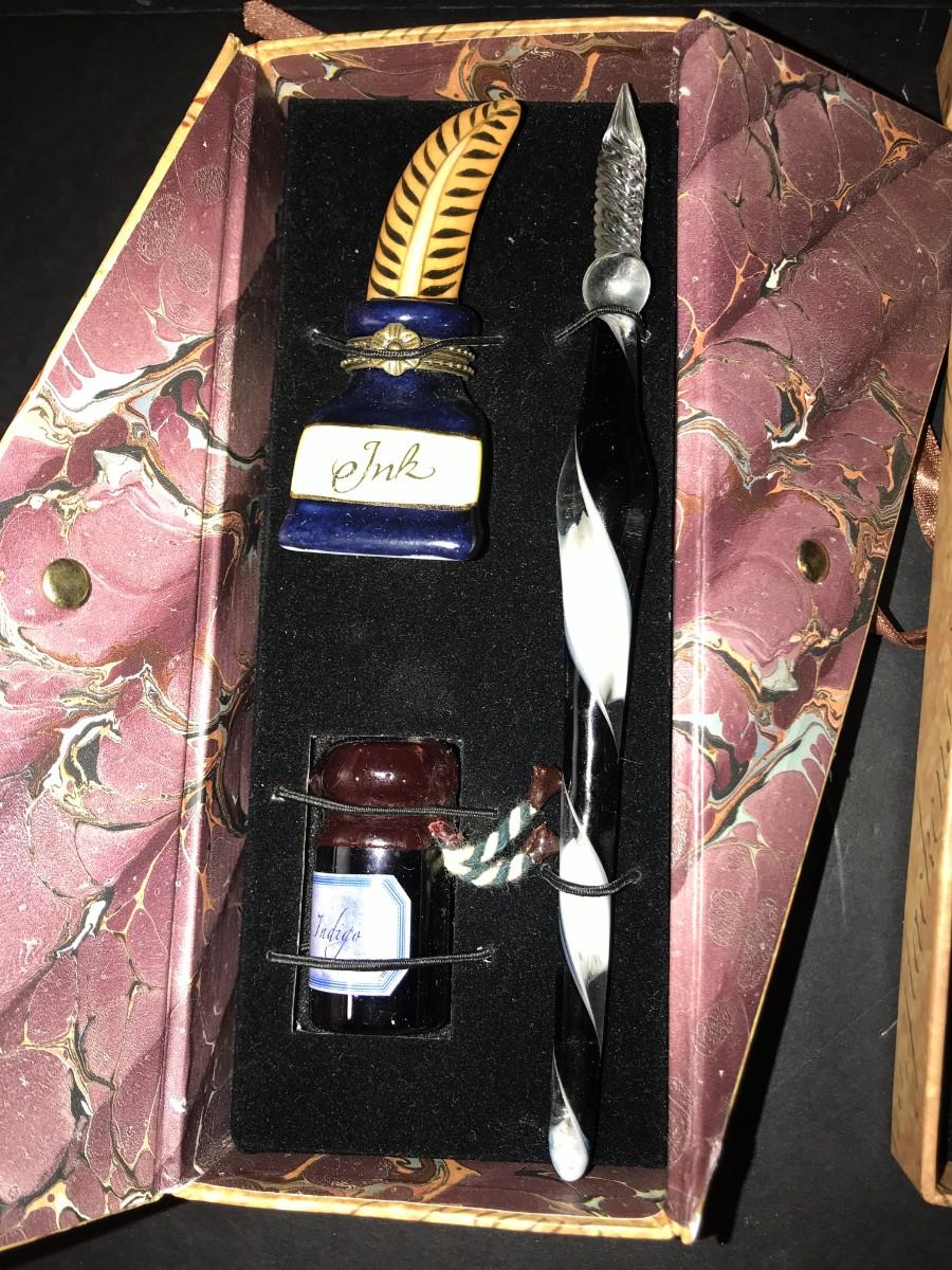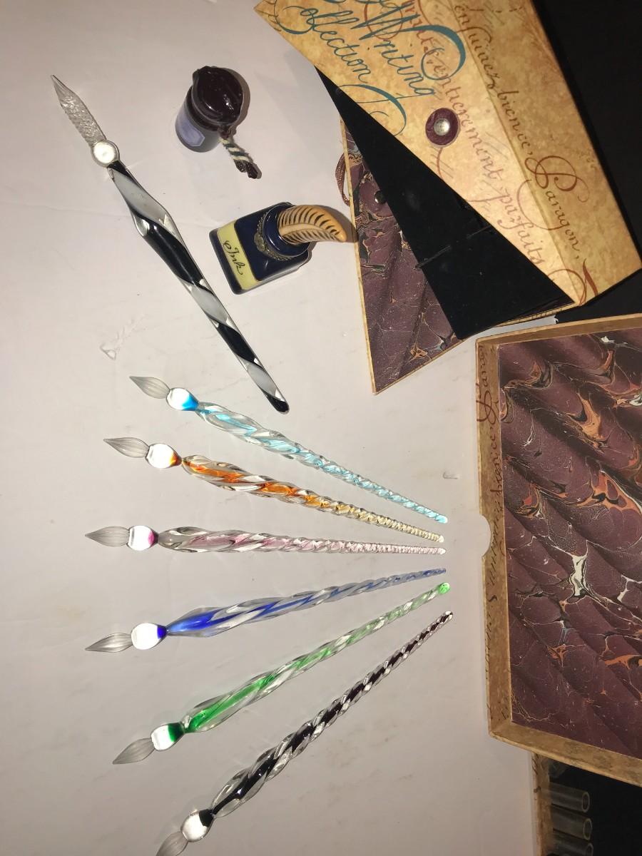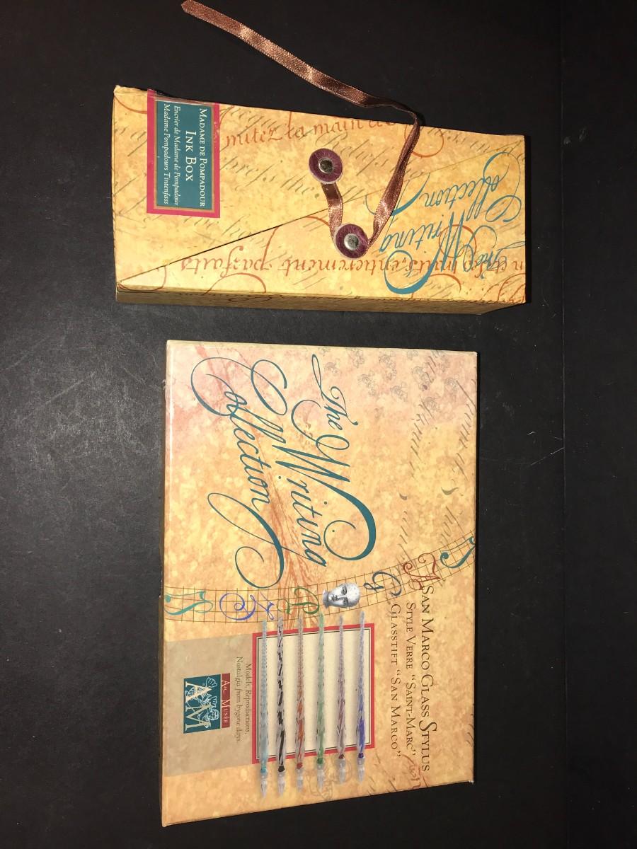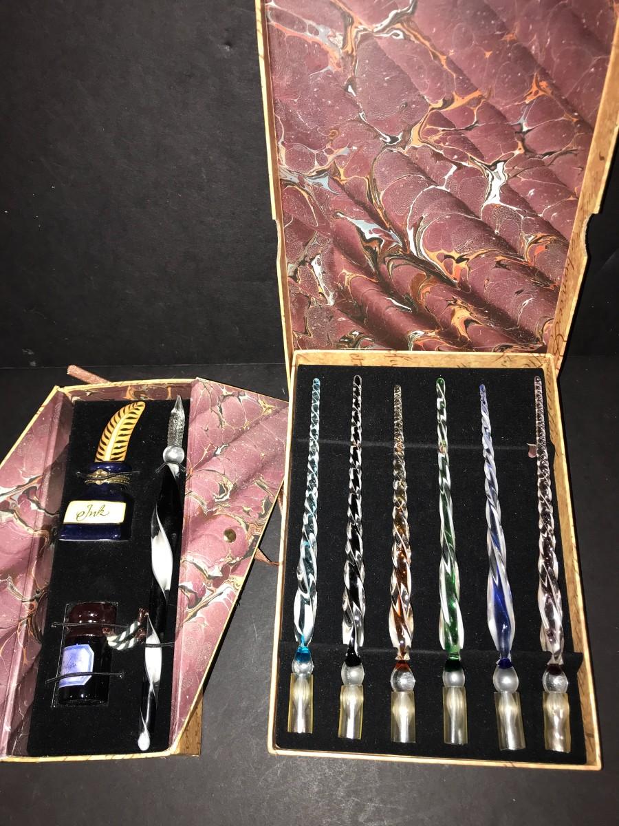 Madame Pompadour & San Marco "The Writing Collection" Glass Stylus & Ink Sets