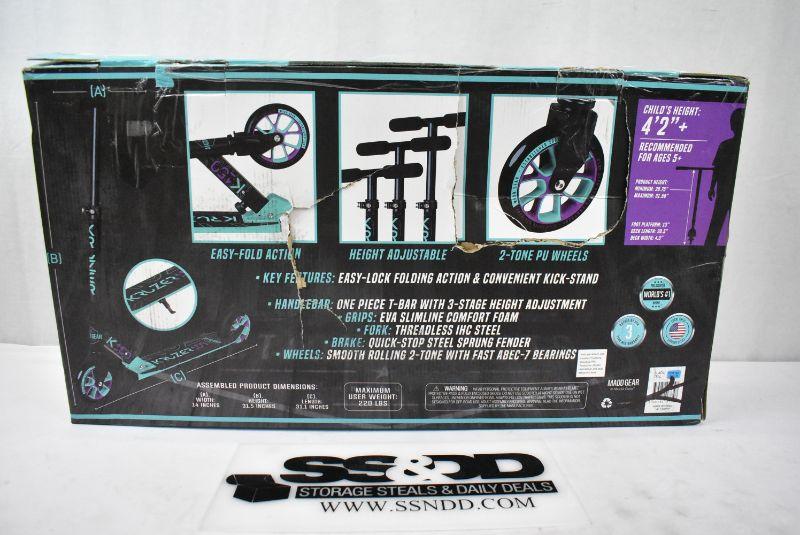 Madd Gear Kruzer 150 Folding Height Adjustable Kids Scooter (Teal) Suits Ages 5+ - Max Rider Weight 220lbs. Near new