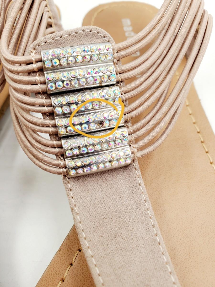 Very pretty Madden Girl saddles with glittery rhinestones...the sandle straps are a blush color, one Rhinestone is missing but they are in otherwise good condition with box!