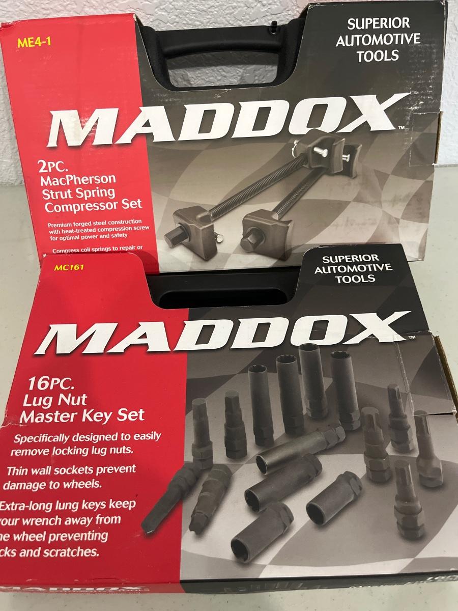 Maddox 16 piece lug nut set, 2 piece MacPherson strut spring compressor set NIB