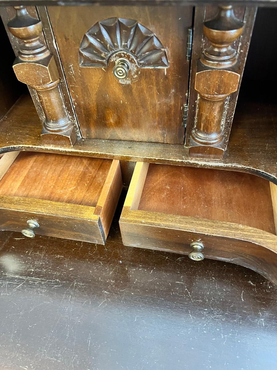 Maddox Walnut drop down desk dresser