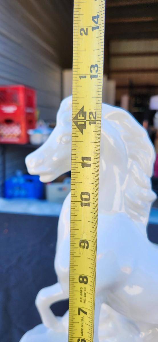 This vintage Maddux of California TV lamp features a beautifully crafted white stallion horse design that would make a great addition to any mid-century modern collection. The lamp is corded and comes with both a rotary knob and remote control for easy use. It has a gloss finish and is made of ceramic material.