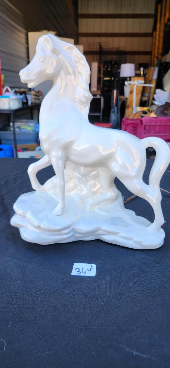 Maddux of California White Stallion Horse TV Mantle Lamp MCM W/ Light