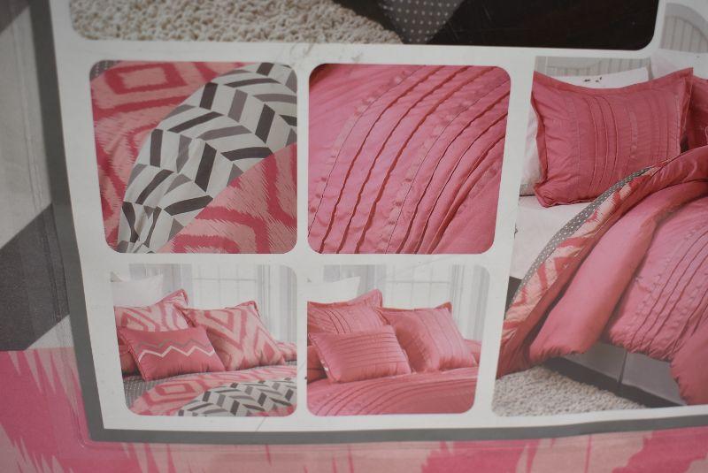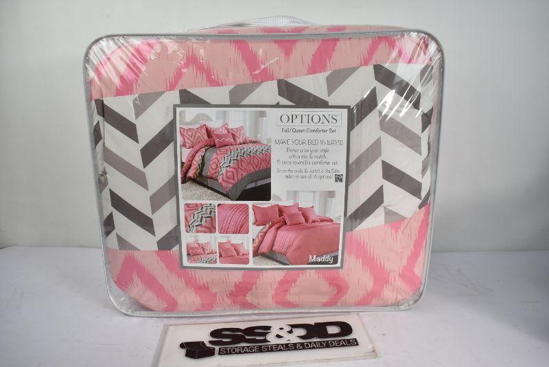 Maddy Reversible Comforter Set, Full/Queen. Pink/Gray/White, $70 Retail - New