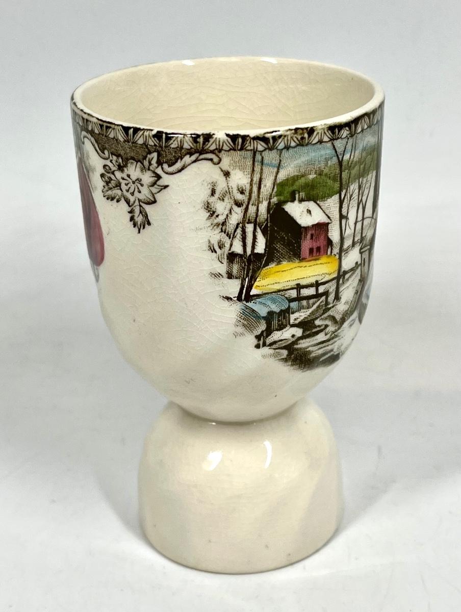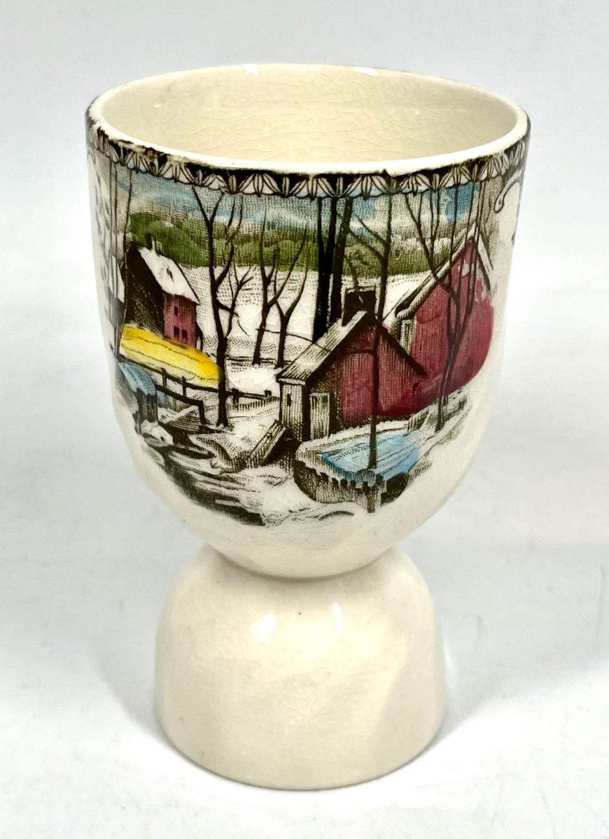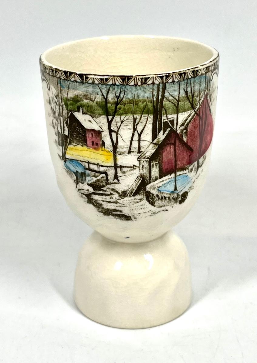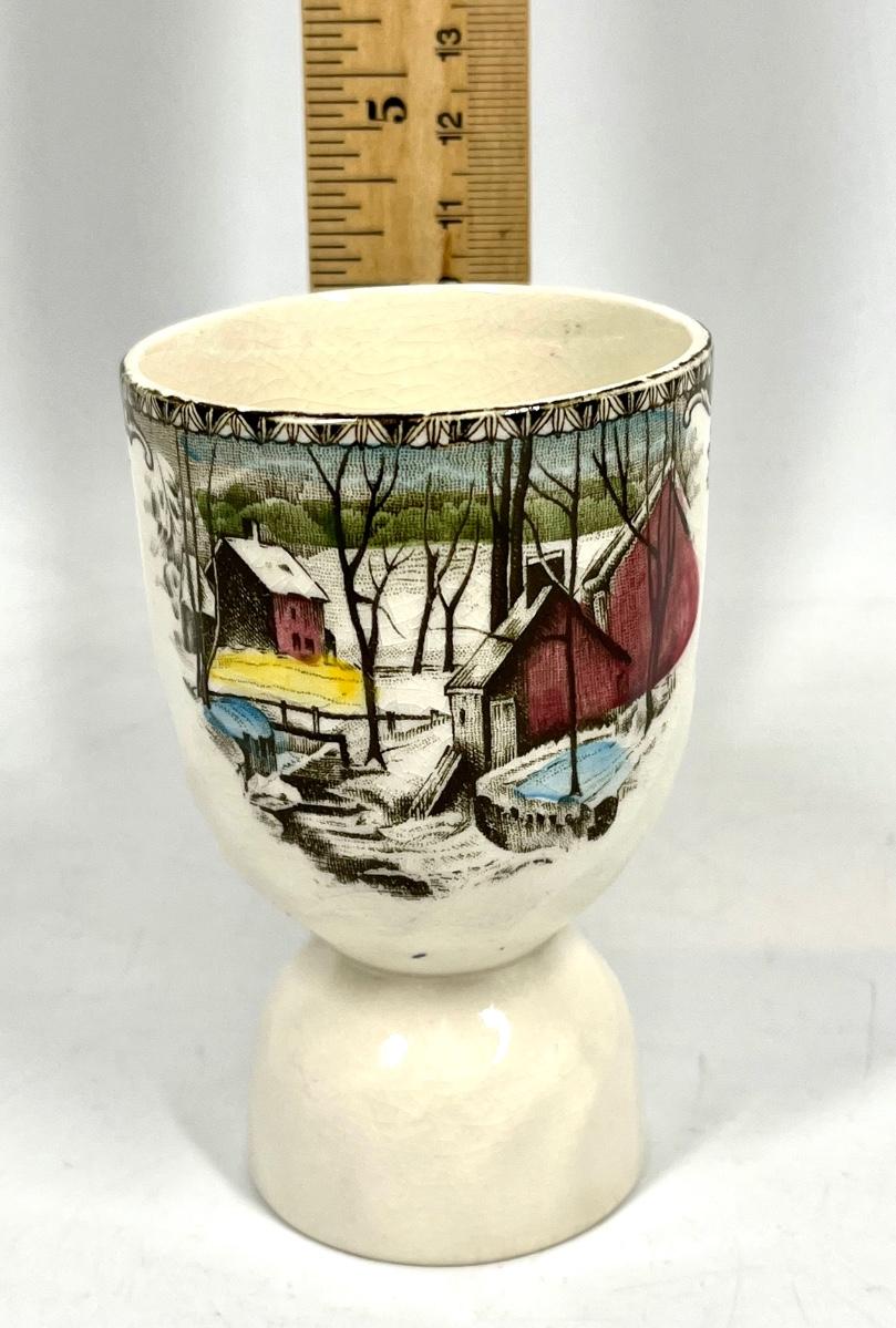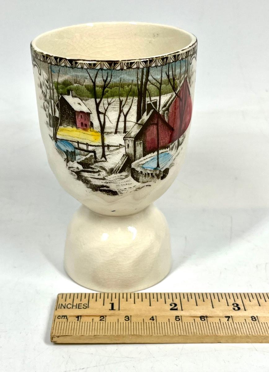 Vintage Made in England Winter Barn Scene Porcelain Ceramic Egg Cup. In good vintage condition. There is crazing but it displays nicely.
