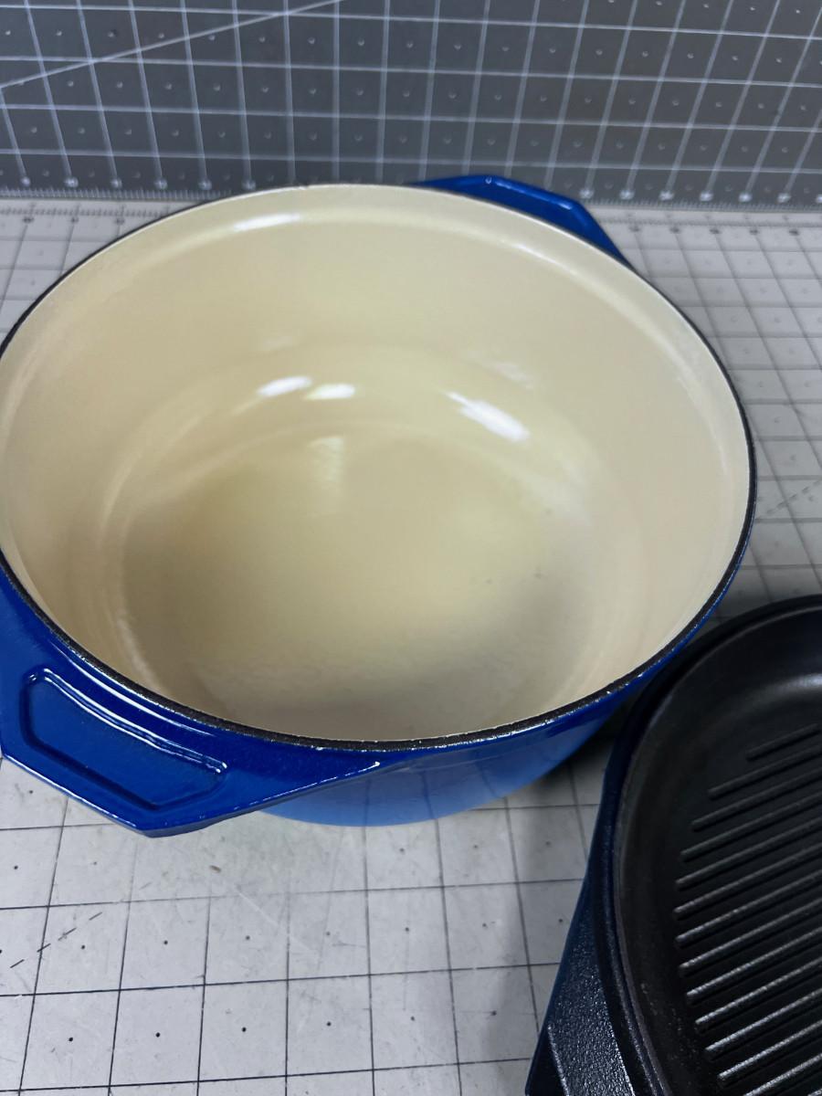 Made in France, BLUE Cast Iron Enamel Dutch Oven 2-piece