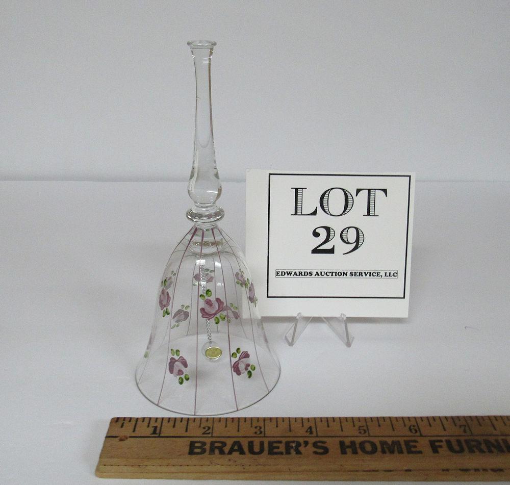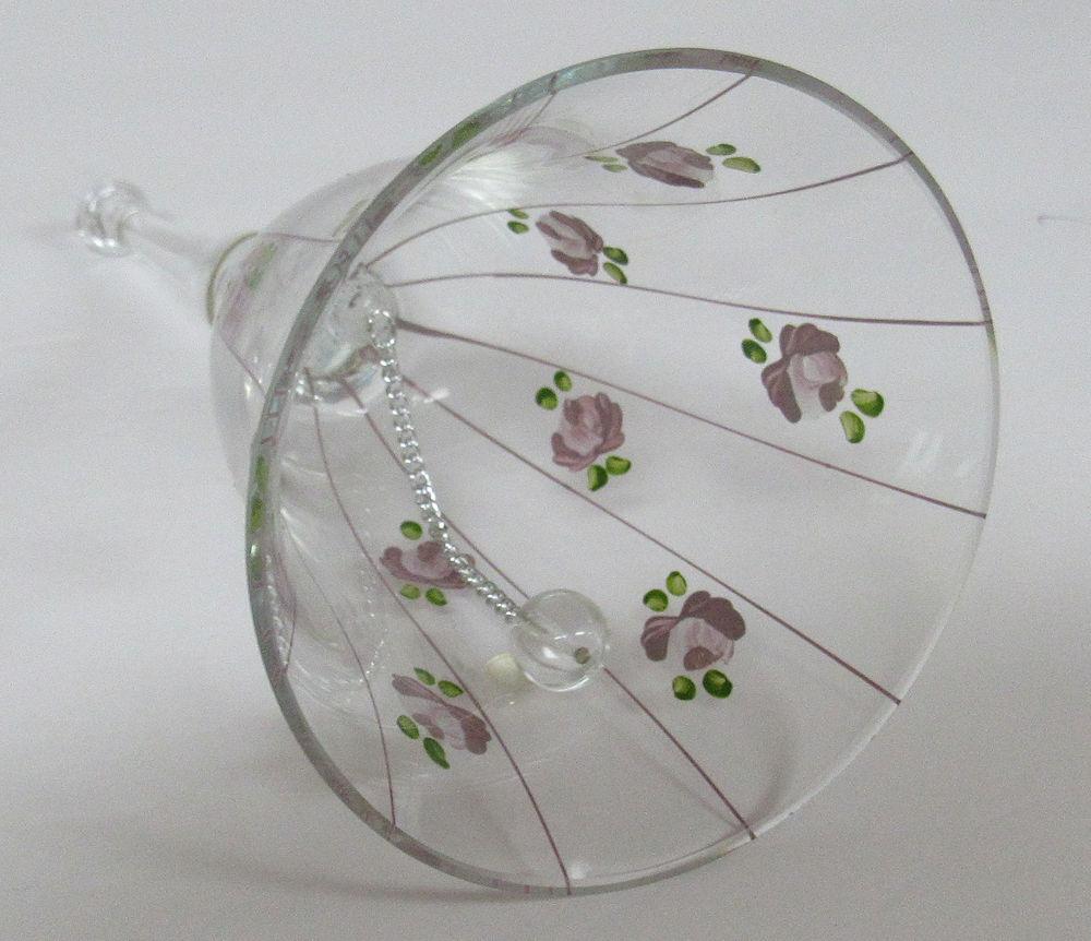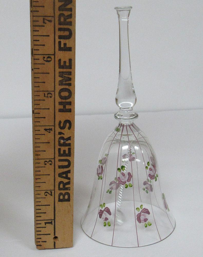 Made in Hungary, Clear Glass Bell With Hand Painted Roses