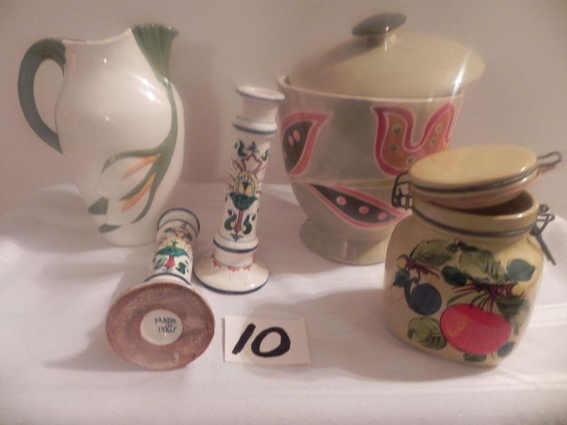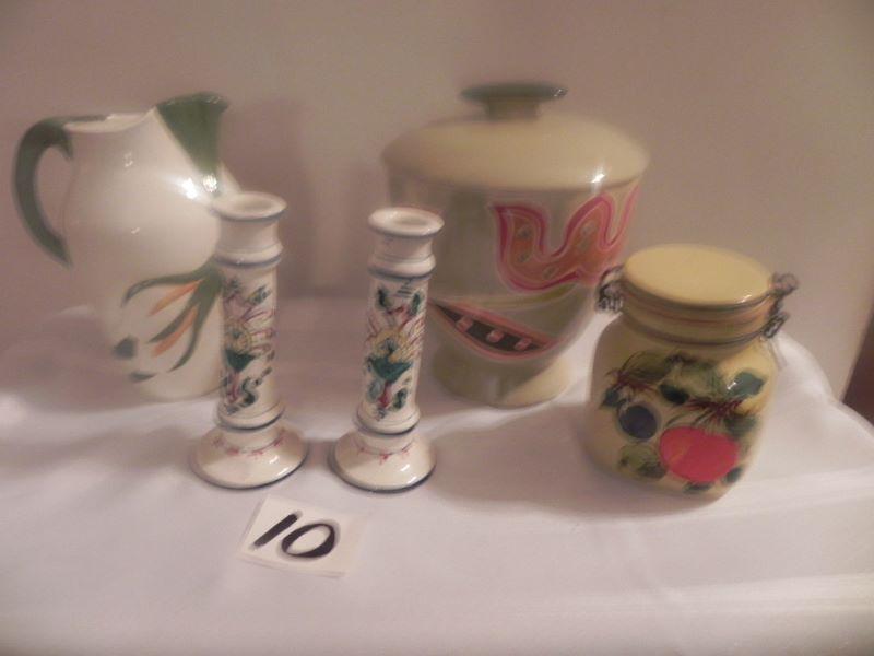 andle sticks and small container are made in Italy, Pitcher cookie jar,