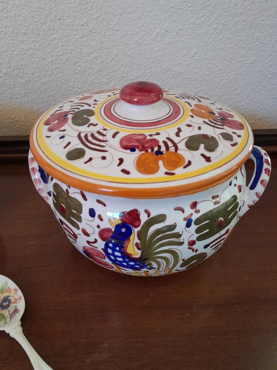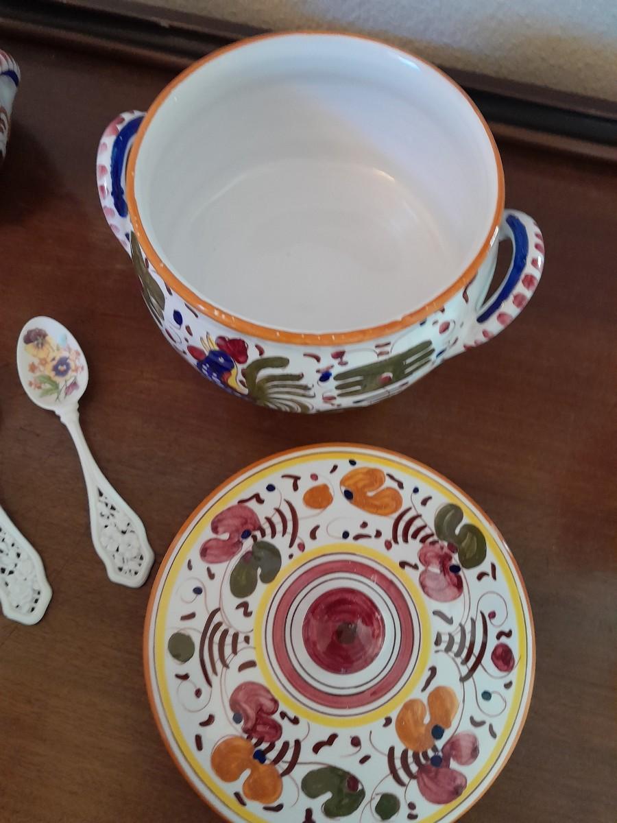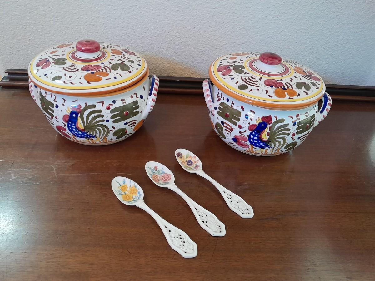 MADE IN ITALY HAND PAINTED COVERED DISHES AND SPOONS