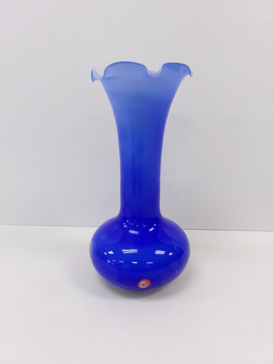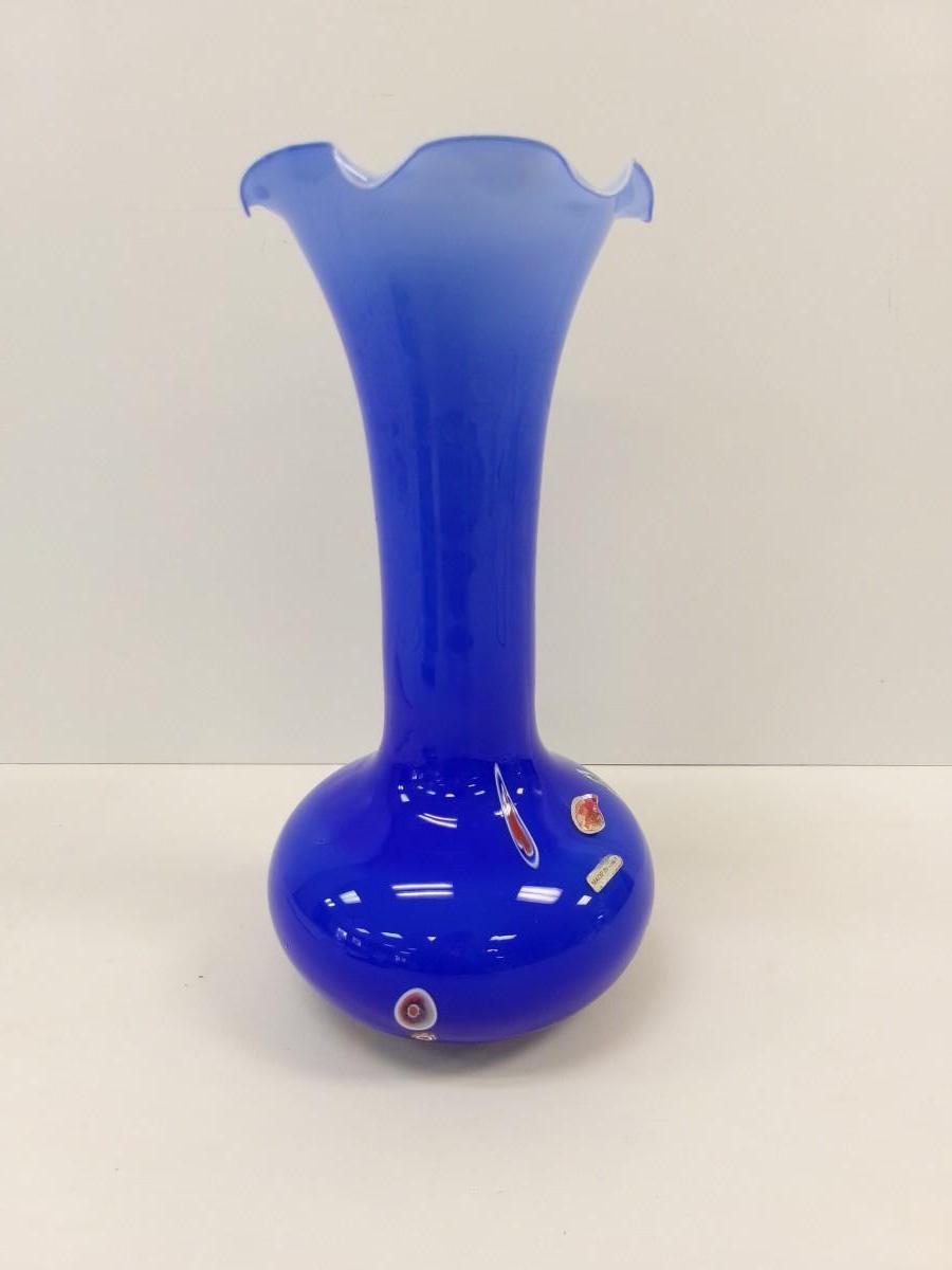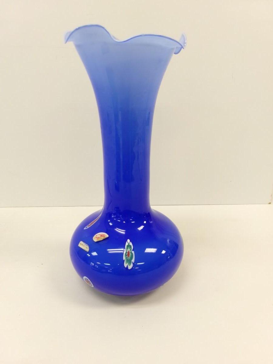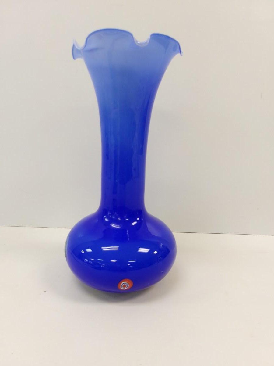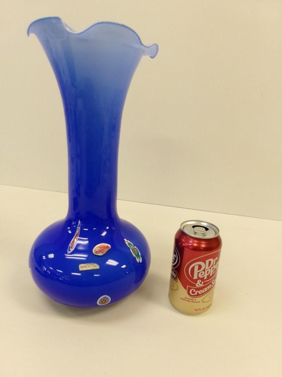 Made In Italy Blue Murano Hand Blown Vase Approx 14" Tall