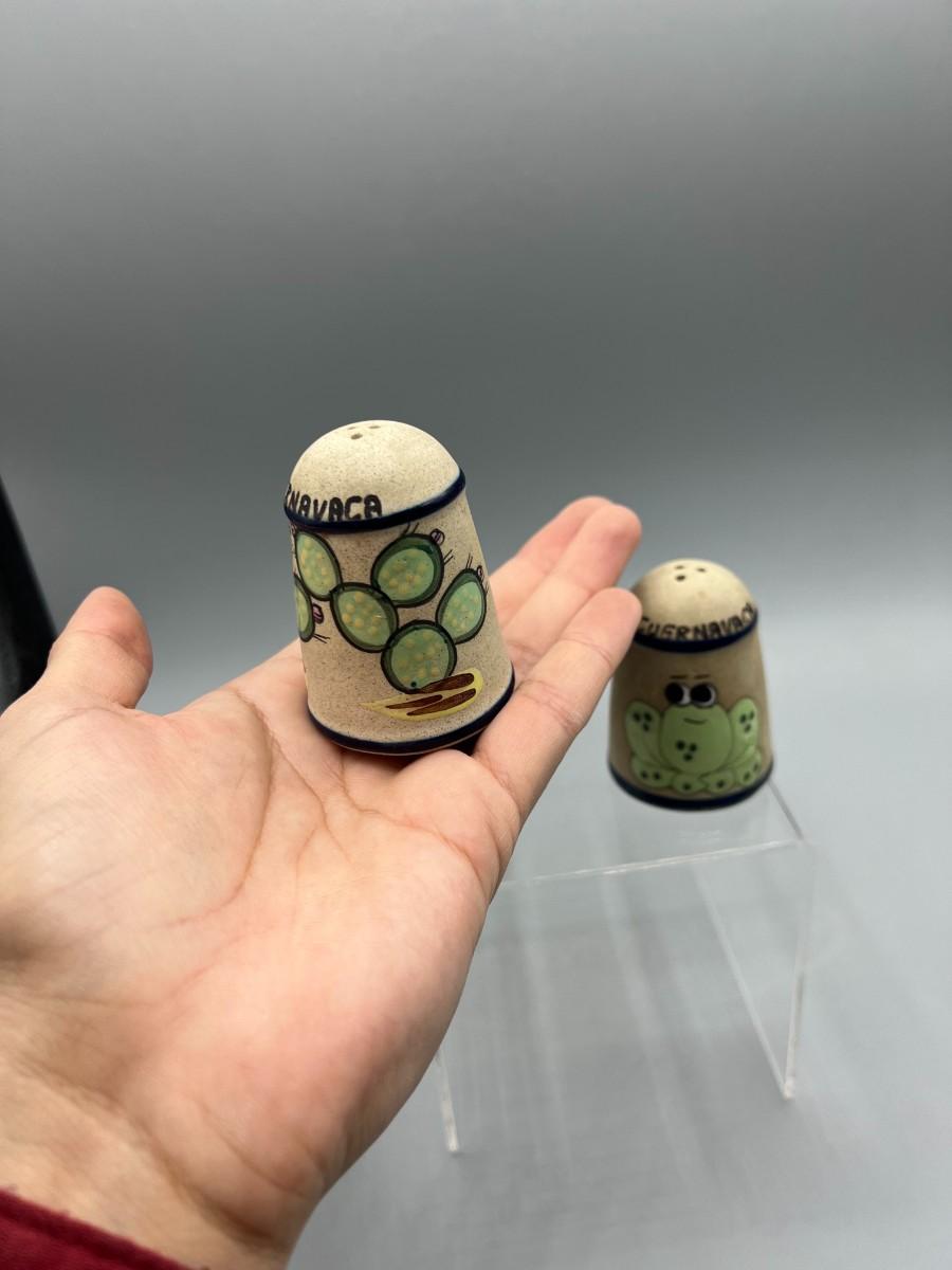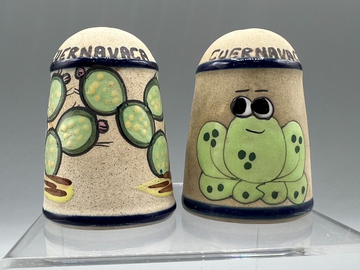 Made in Mexico Souvenir Collectible Miniature Salt and Pepper Shakers Cactus and Frog Cuernavaca