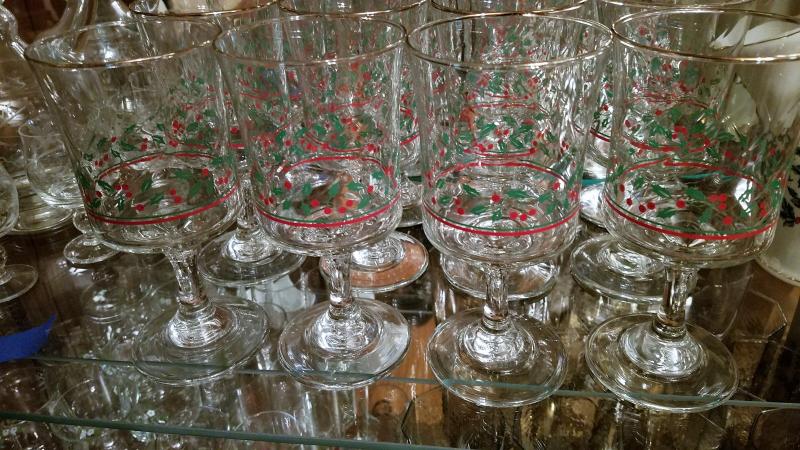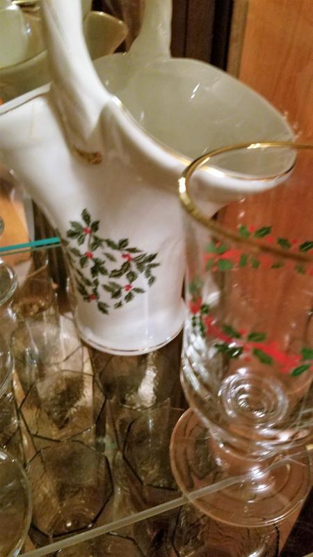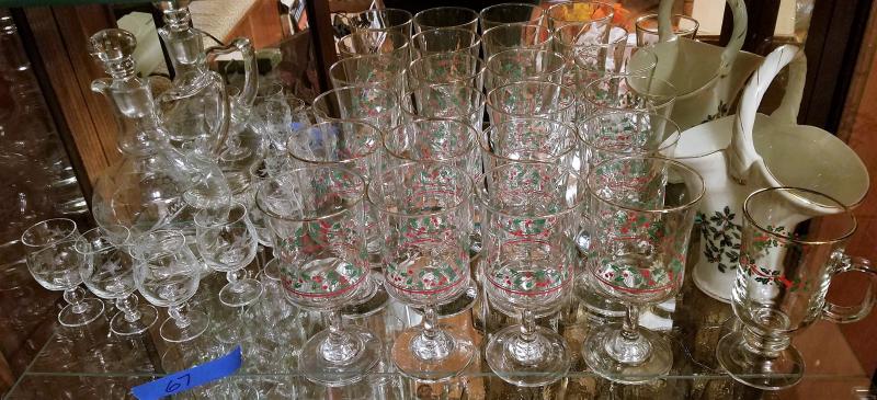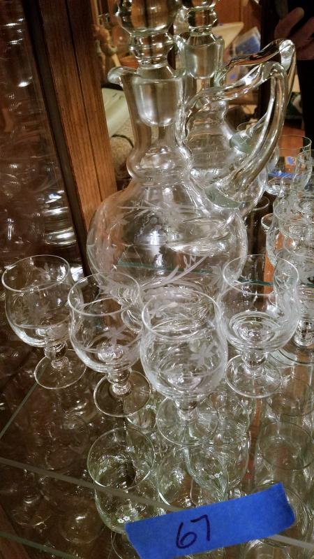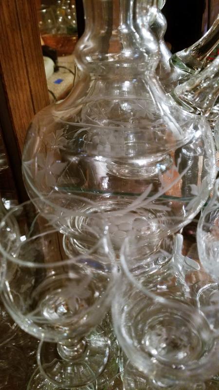 Crystal wine decanter ETCHED Grape pattern. This set also has great holiday collection of glasses for your party