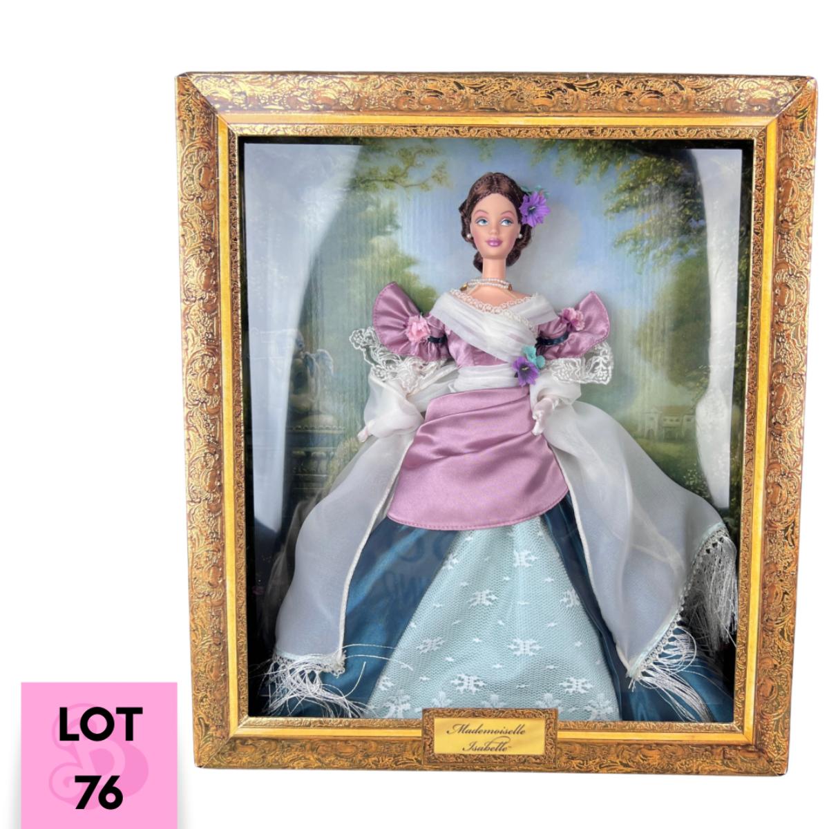 Part of the Portrait Collection is this doll, Mademoiselle Isabella. This extraordinary collection featured Barbie doll in remarkable fashions inspired by celebrated art movements. Mademoiselle Isabelle was inspired by the fanciful Rococo style of art which originated in 18th century France. This doll has not been out of its box. This doll comes with its original shipping box, if desired. **|** Please see photos for details and condition. ::: Shipping is available on this lot. If you require shipping you must let us know at the close of the auction. We will coordinate with you after the item has been won. Shipping fees will include insurance up to or exceeding the value of all items being mailed. If you have any questions regarding this lot please contact the auctioneer either via this website, by direct email or by phone. PICK UP TIMES and other important information can be found in the TERMS and DESCRIPTION of the auction. Please take a look for pertinent information. Thanks!