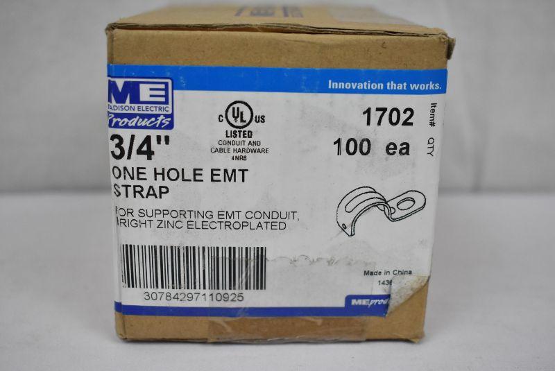 Madison Electric 3/4" One Hole EMT Conduit Strap, 1702, Zinc Plated - Box of 100 - New