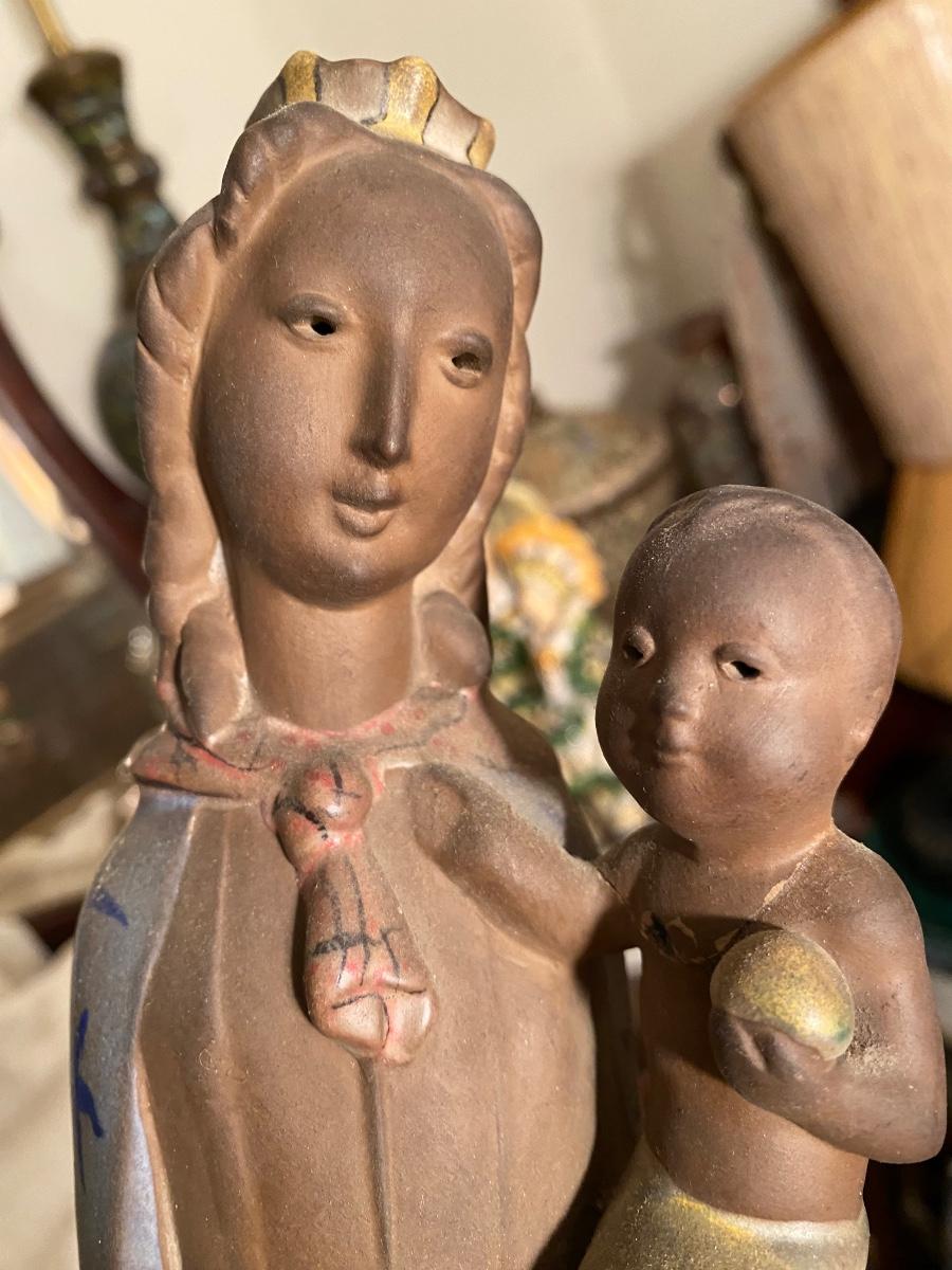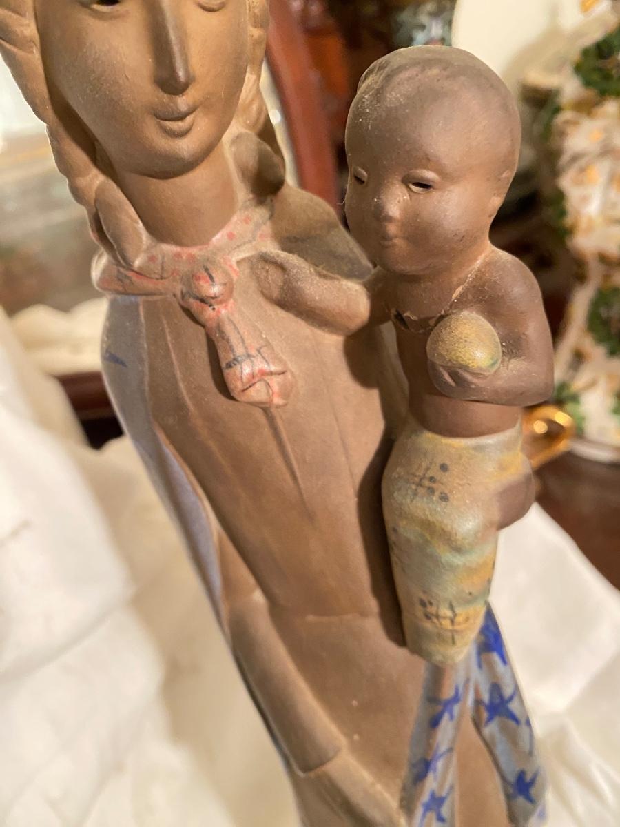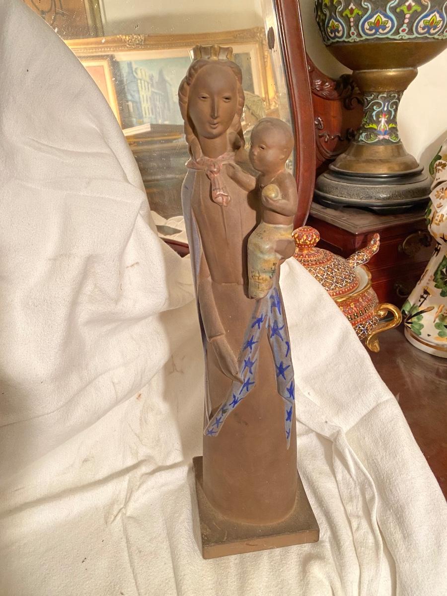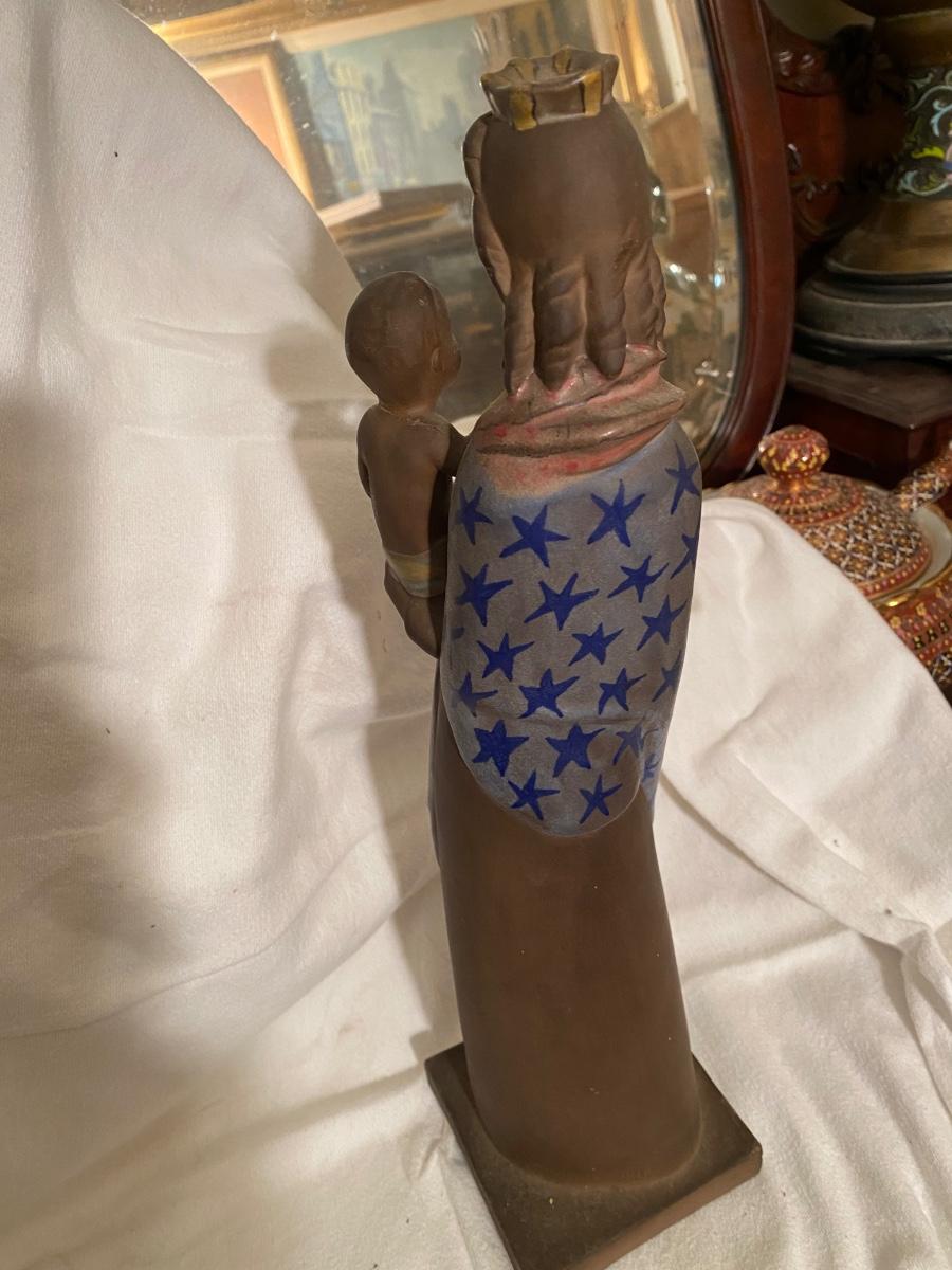 16 " high Madonna and CHild. Marked delvaux. Sadly there is some damage to the baby's neck, but still a sweet piece