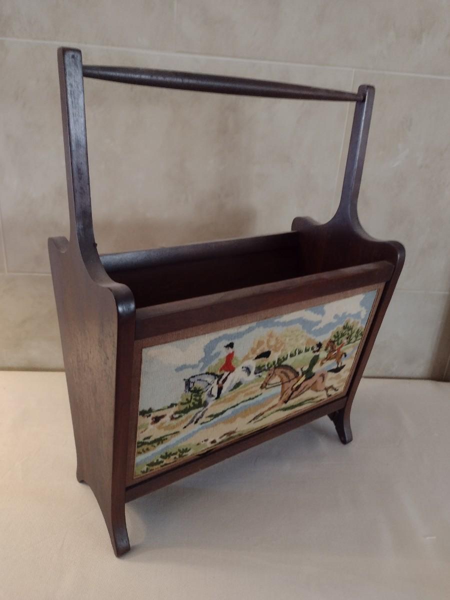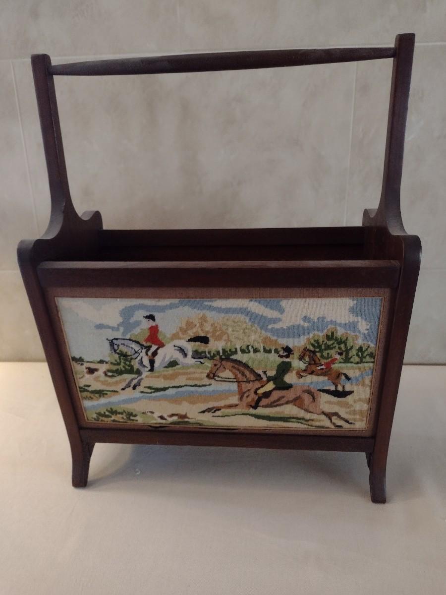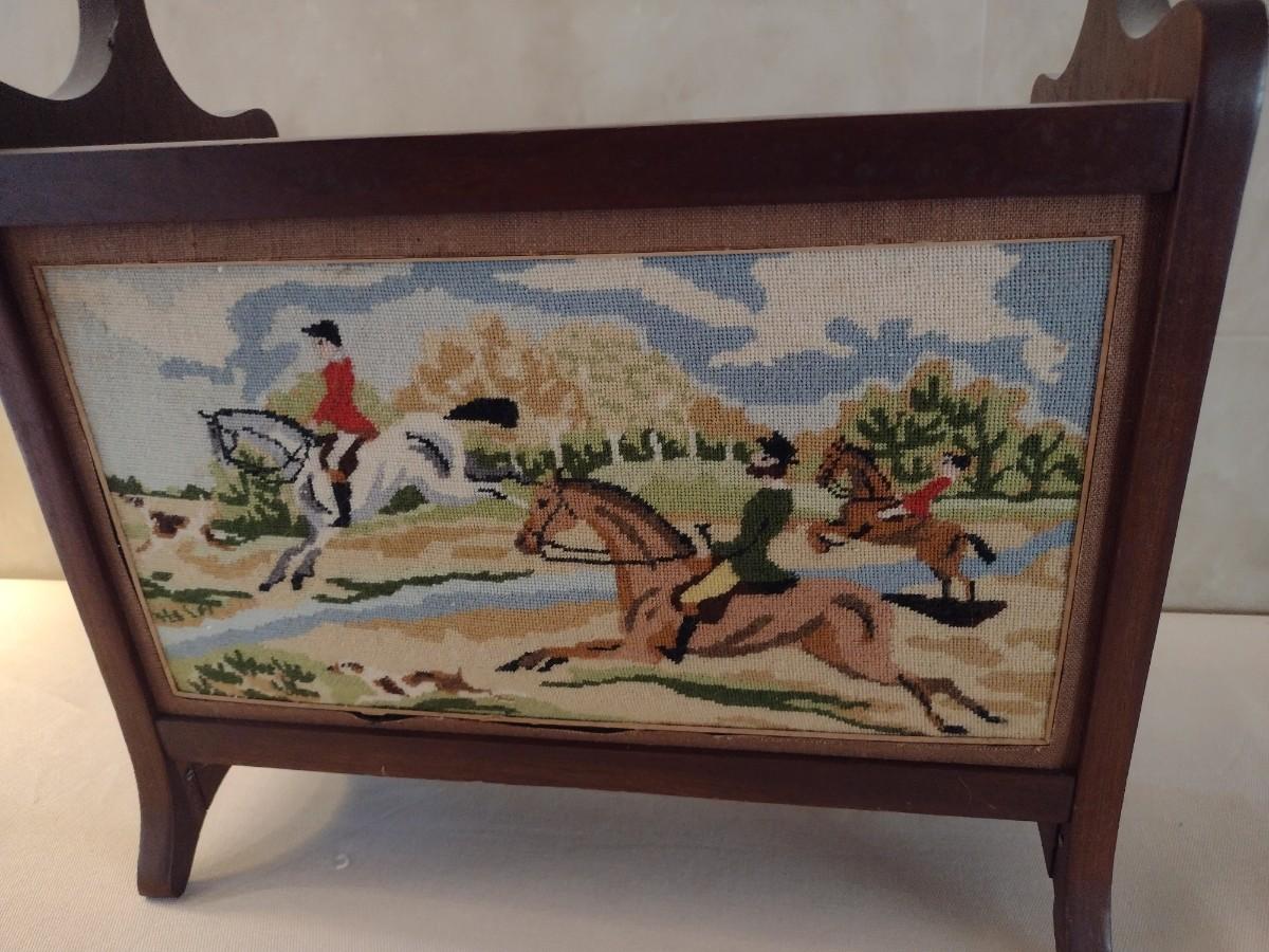 Solid Wood Magazine Cradle with Hunter Themed Needlework Cover