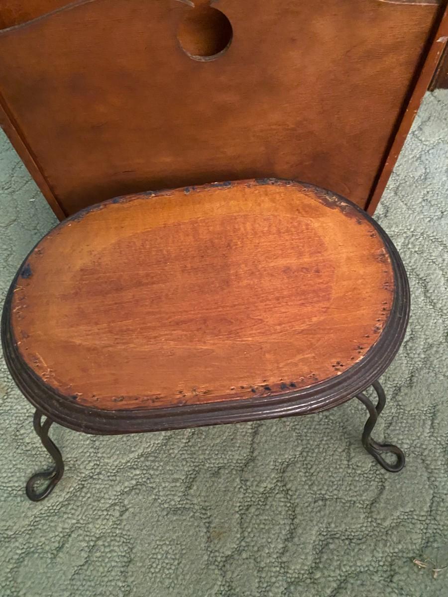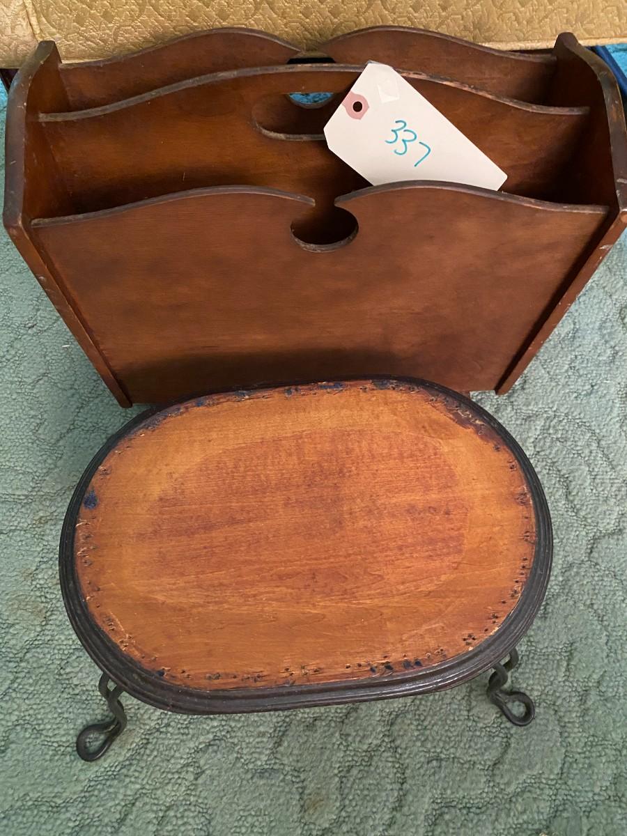LOT 337 Magazine Rack and Iron Based Foot Stool Lot As Pictured