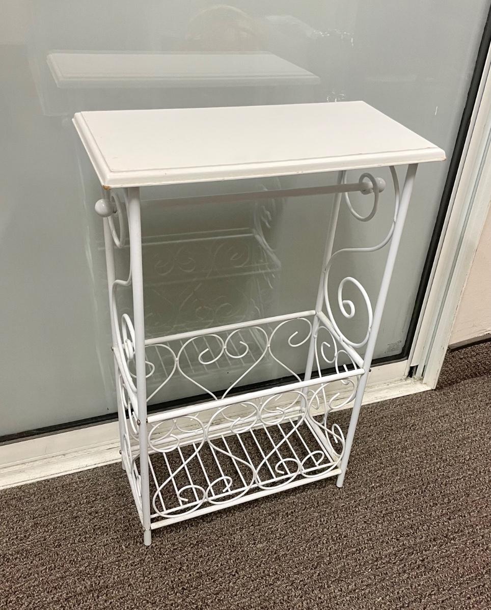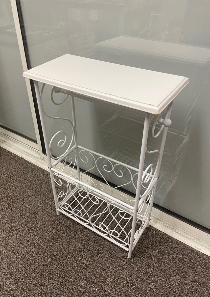 There is no damage to the end table and is in overall good condition. Check pictures for more details and sizing.