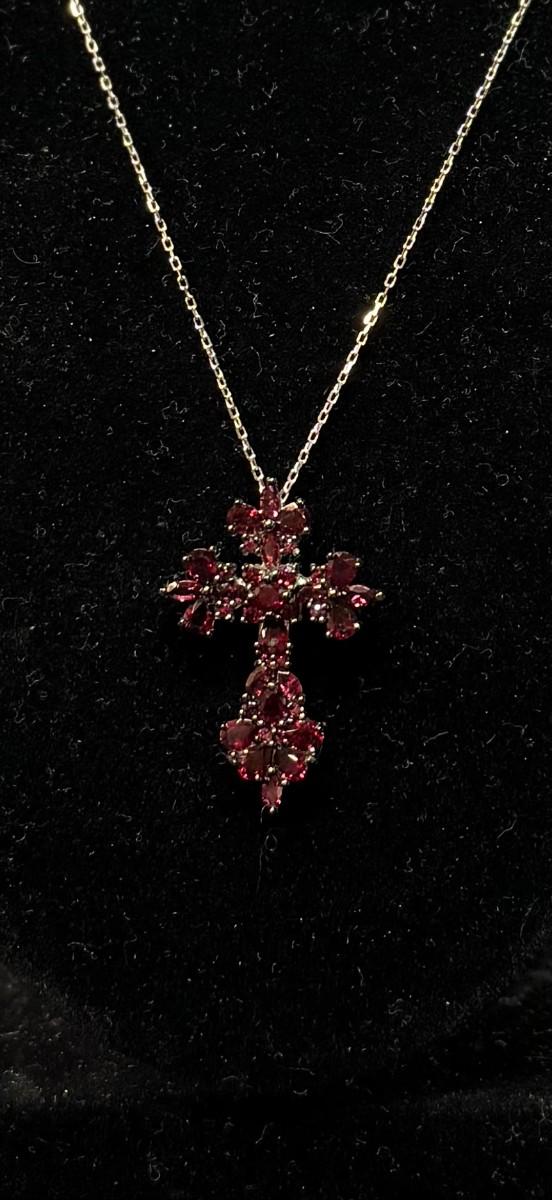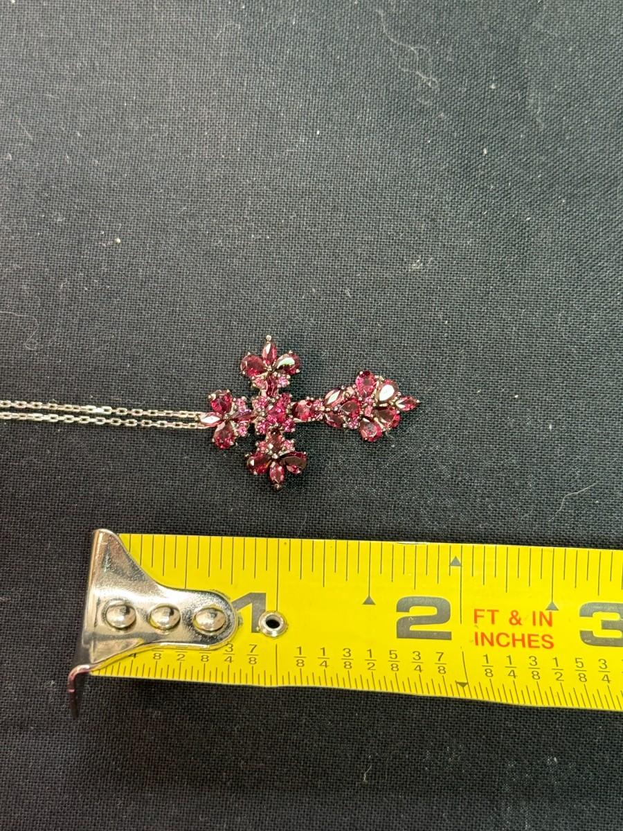 Magenta Rhodolite Rhodium Pendant with Sterling Silver Chain