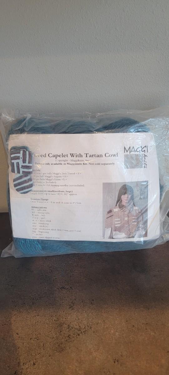 Maggi Knit kit, Ireland. Tweed Capelet with Tartan Cowl