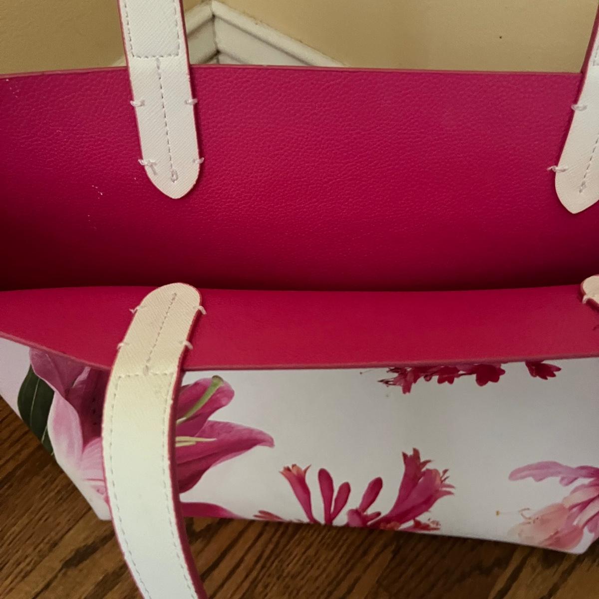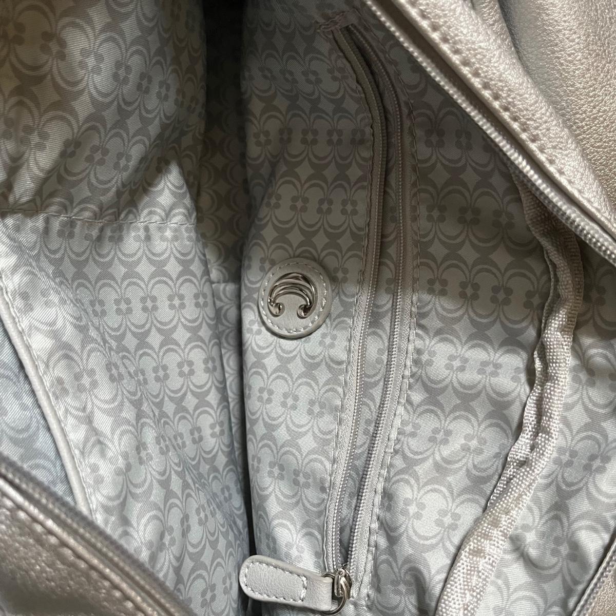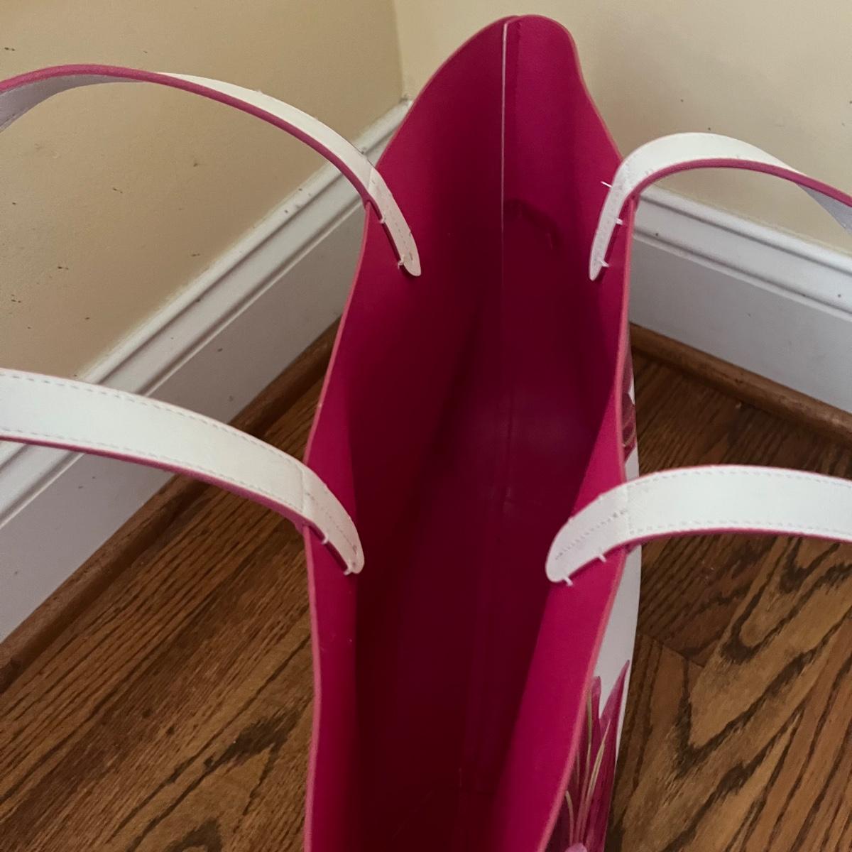 Lot includes a MaggiB backpack purse and clutch, Lily Waters backpack purse, Charming Charlie Faux leather purse, Estée Lauder tote, Galleria equestrian themed umbrella and more. Tote measures 6” x 14” x 17”not including handles.