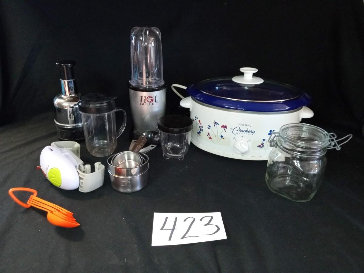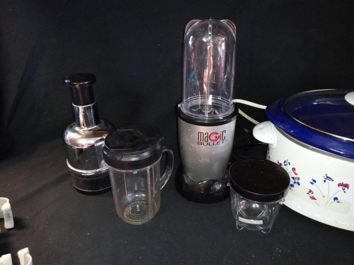 MAGIC BULLET, CROCK POT, JAR OPENER AND FOOD CHOPPER