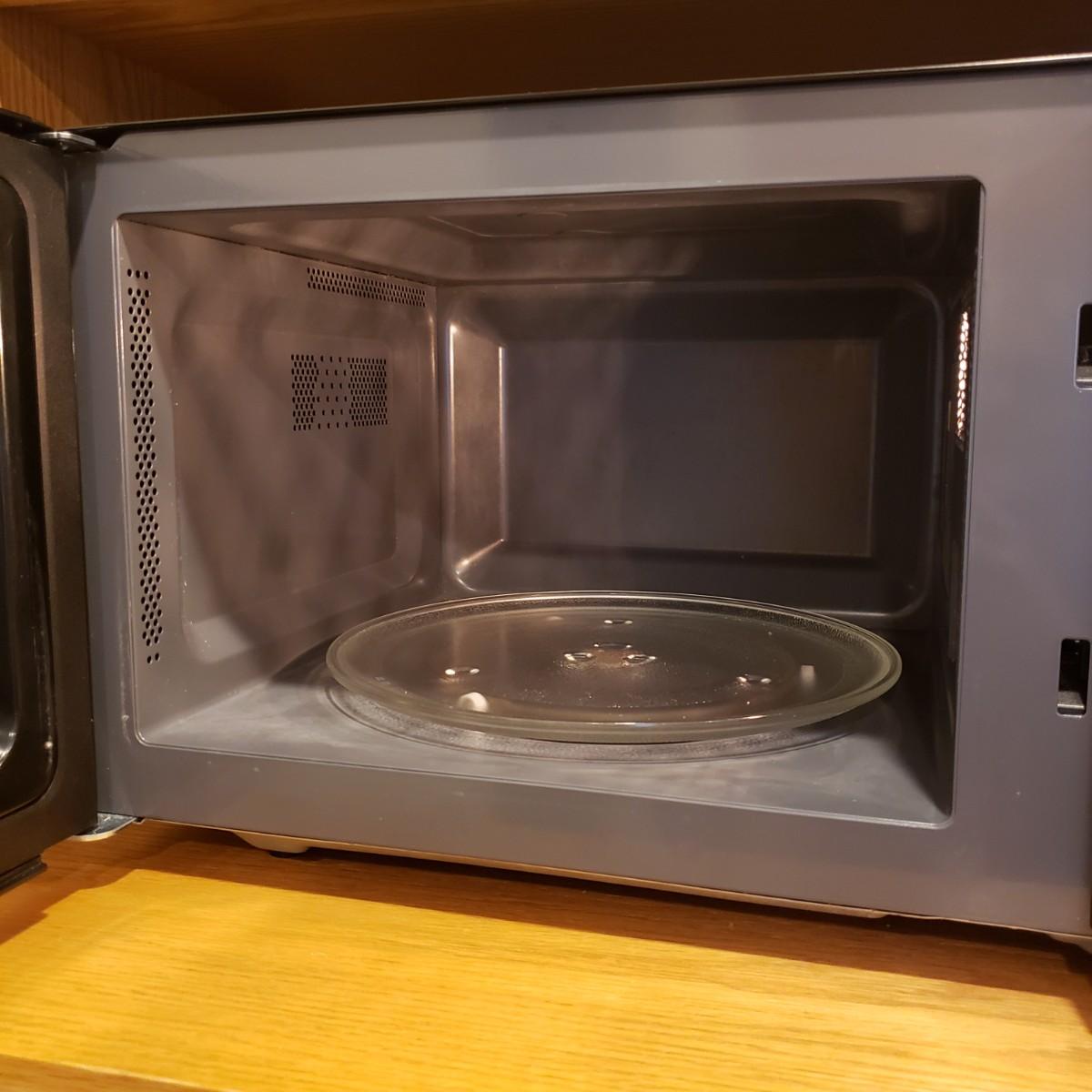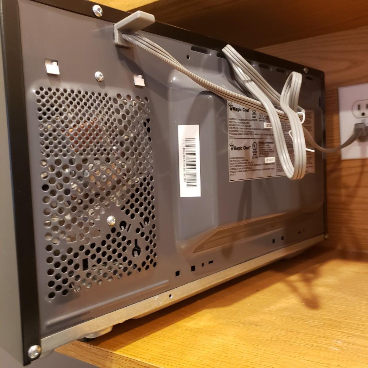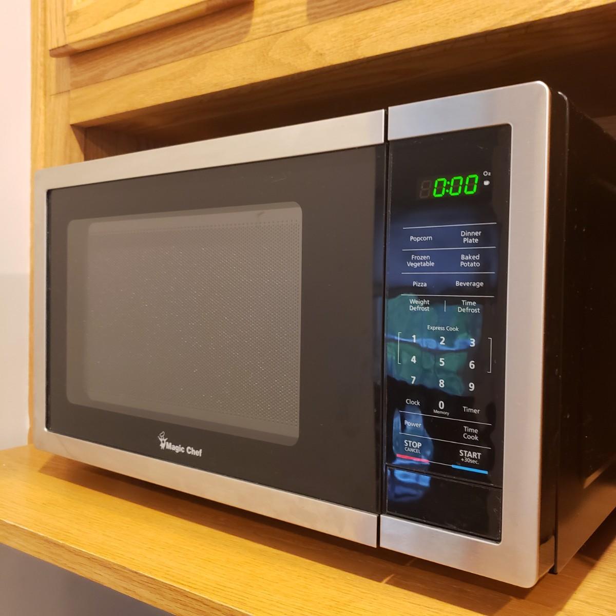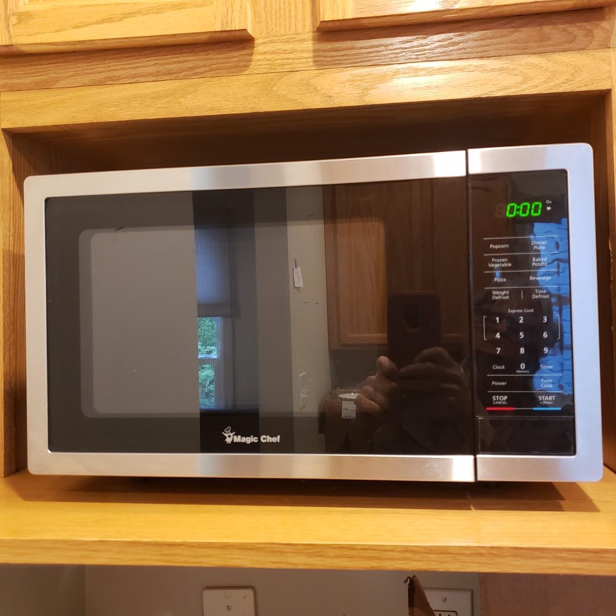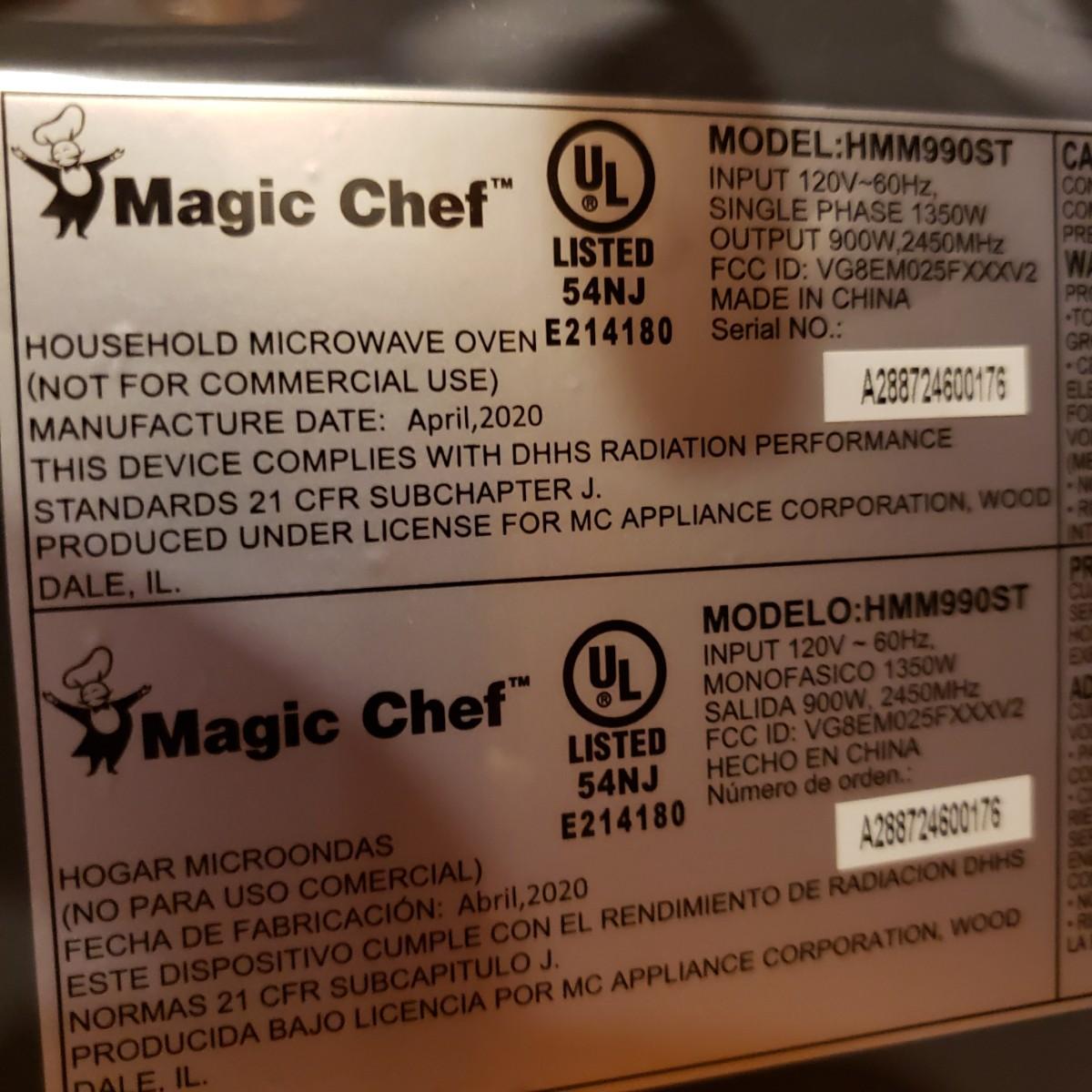 This is a smaller capacity microwave by Magic Chef. The microwave measures 19" x 13" x 12"H. It powers on when plugged in.