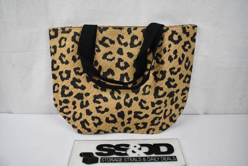 Magid Women's Leopard Straw Beach Tote Bag. Lined. Zipper Closure - New