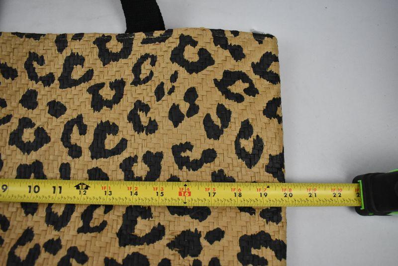 Magid Women's Leopard Straw Beach Tote Bag with Flat Handle. Lined. Zipper Closure - New