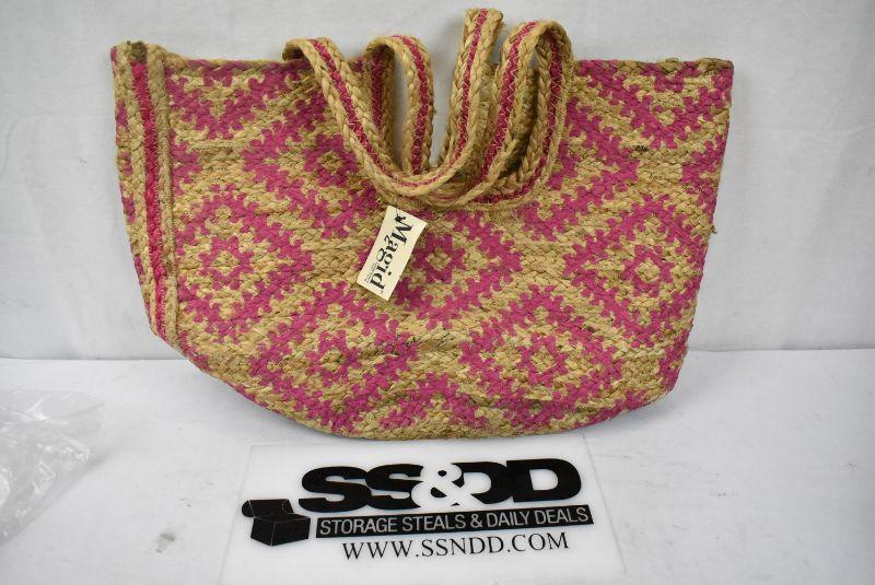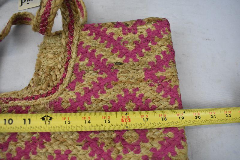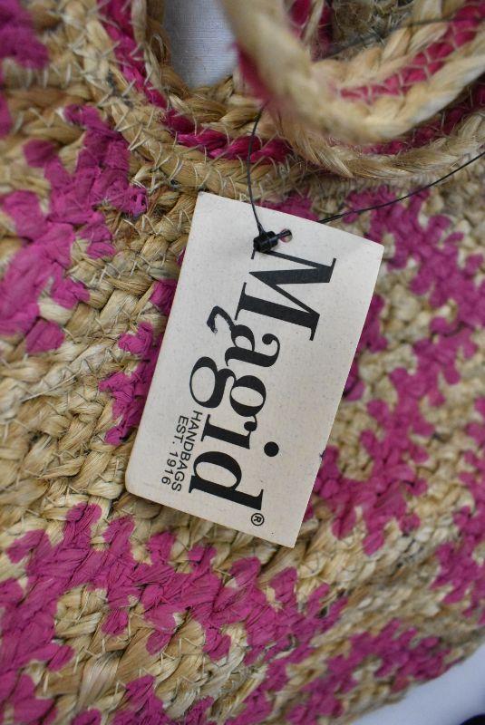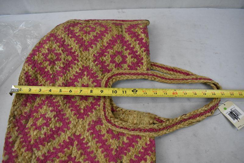 Magid Womens Straw Jute Geometric Toast Fuchsia Printed Tote - New