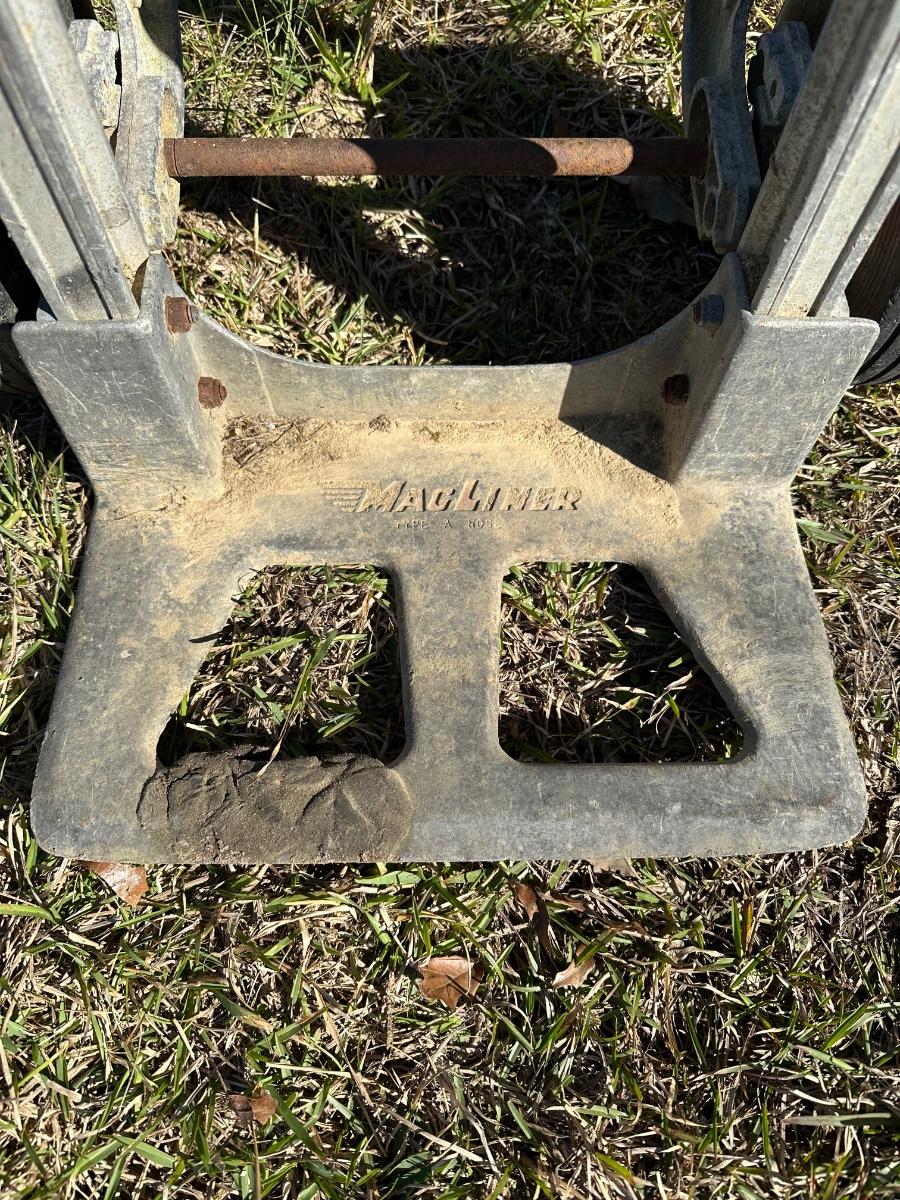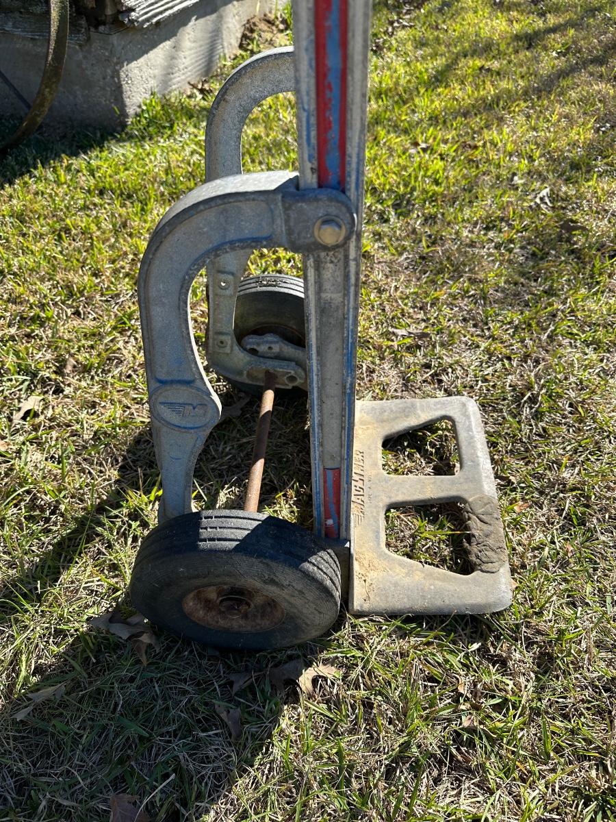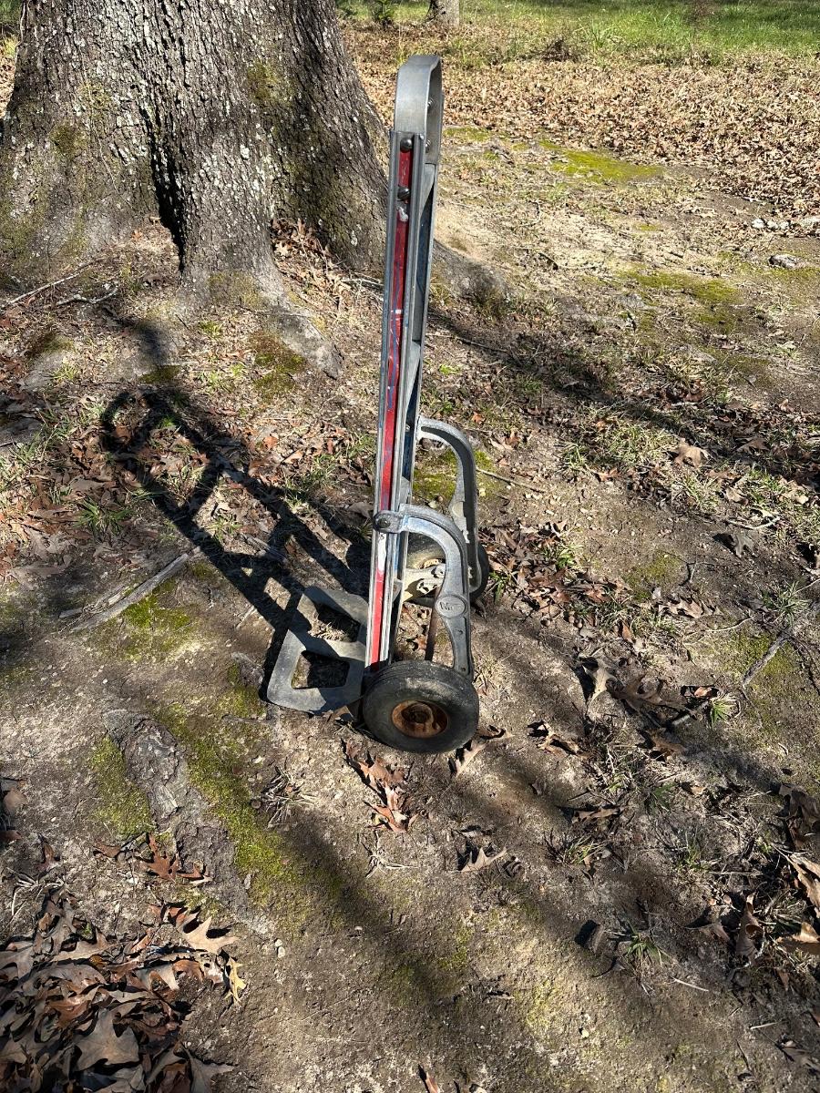 Original Magliner aluminum hand truck featuring a solid cast base plate and dual wheels. This is a commercial-grade dolly, well known for durability and balance. Constructed primarily of aluminum with steel hardware.