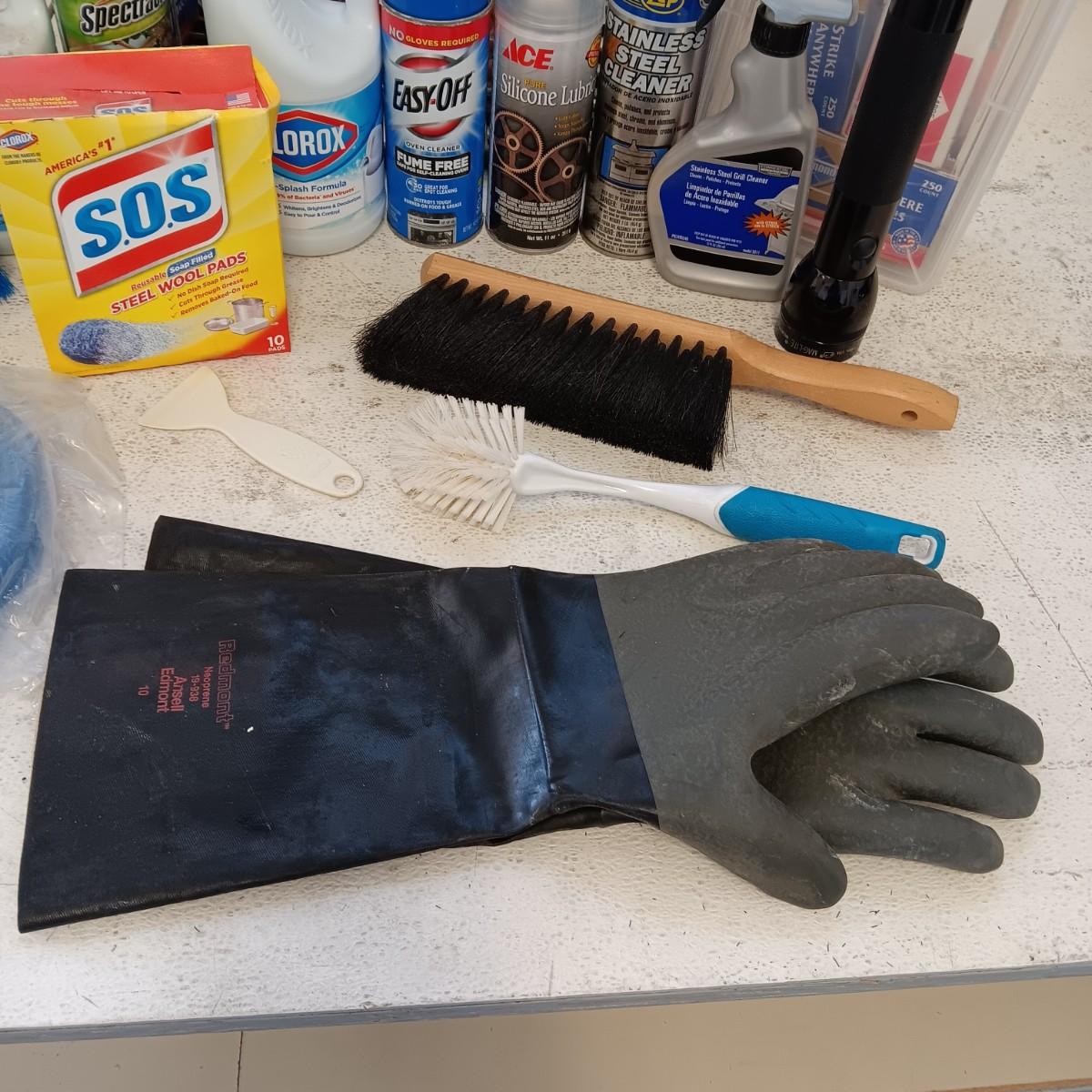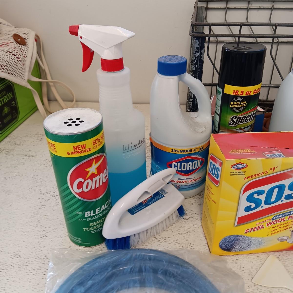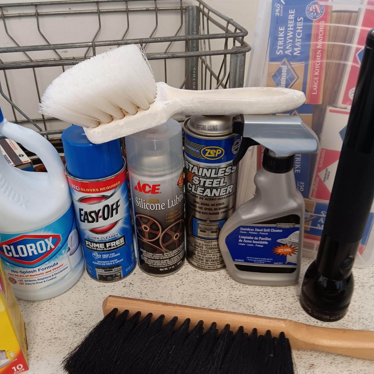MAG-LITE, CLEANING CHEMICALS, MANY BOXES OF STICK MATCHES, MILK CRATE AND MORE