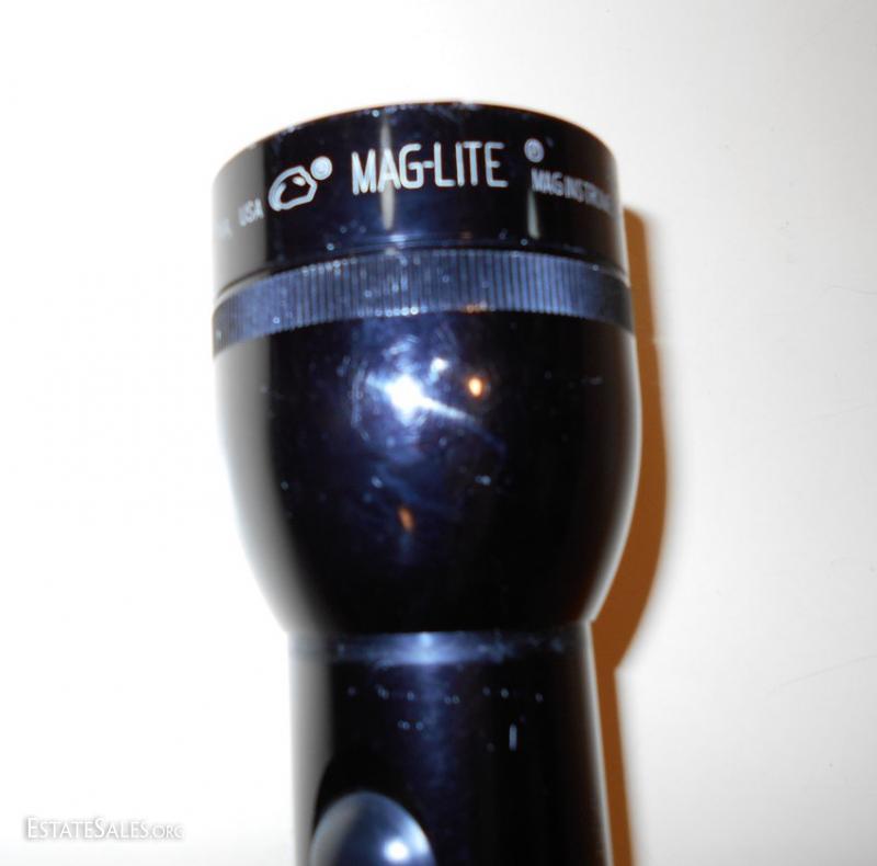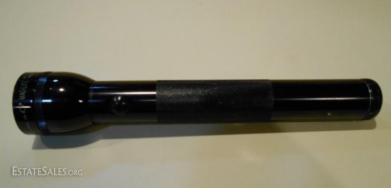 12" metal case Mag-Lite flashlight. Will need batteries. Has some scratching.