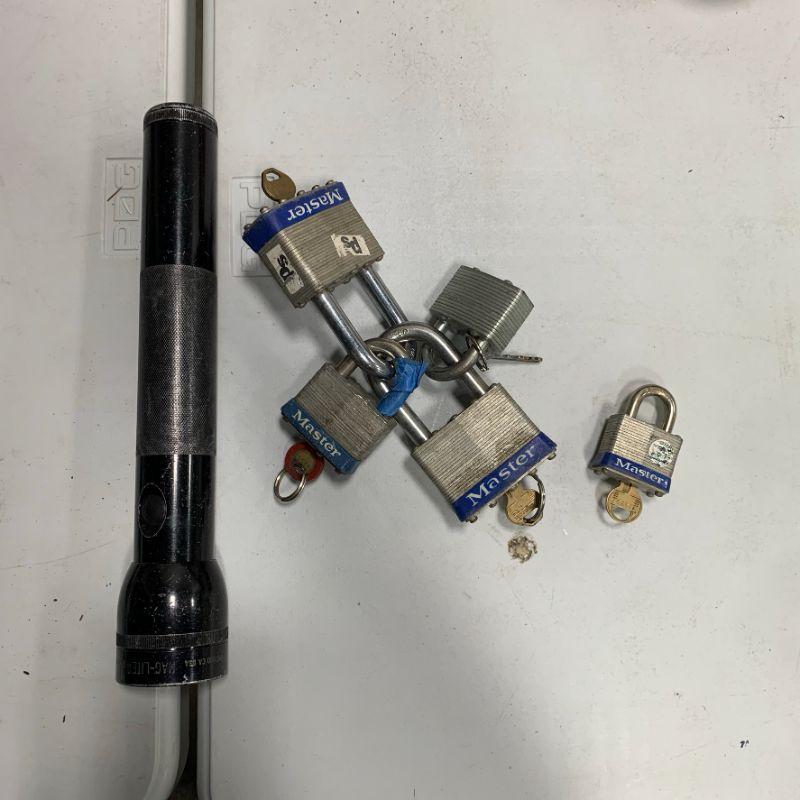 Mag-Lite Flashlight (needs batteries) + 5 NICE Master Locks