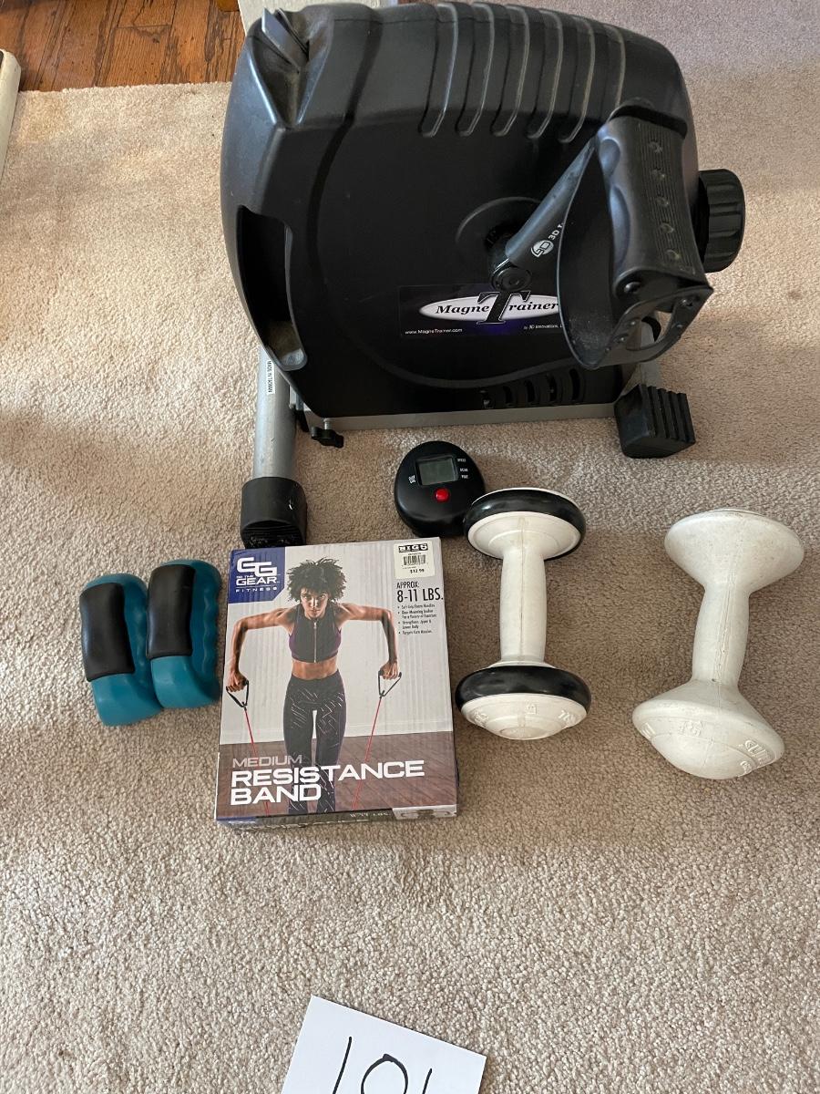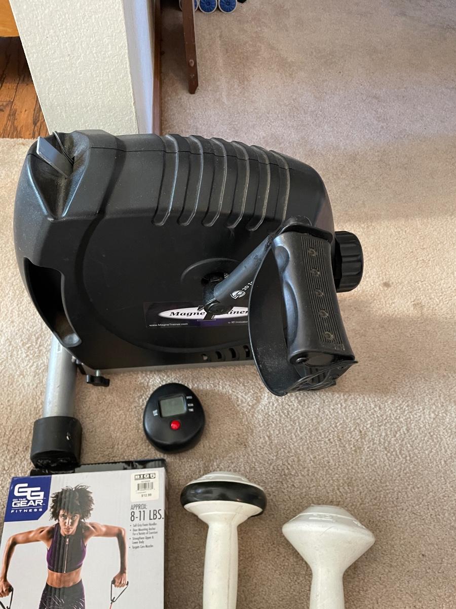 MAGNA TRAINER MINI EXERCISE BIKE, HAND WEIGHTS & RESISTANCE BAND