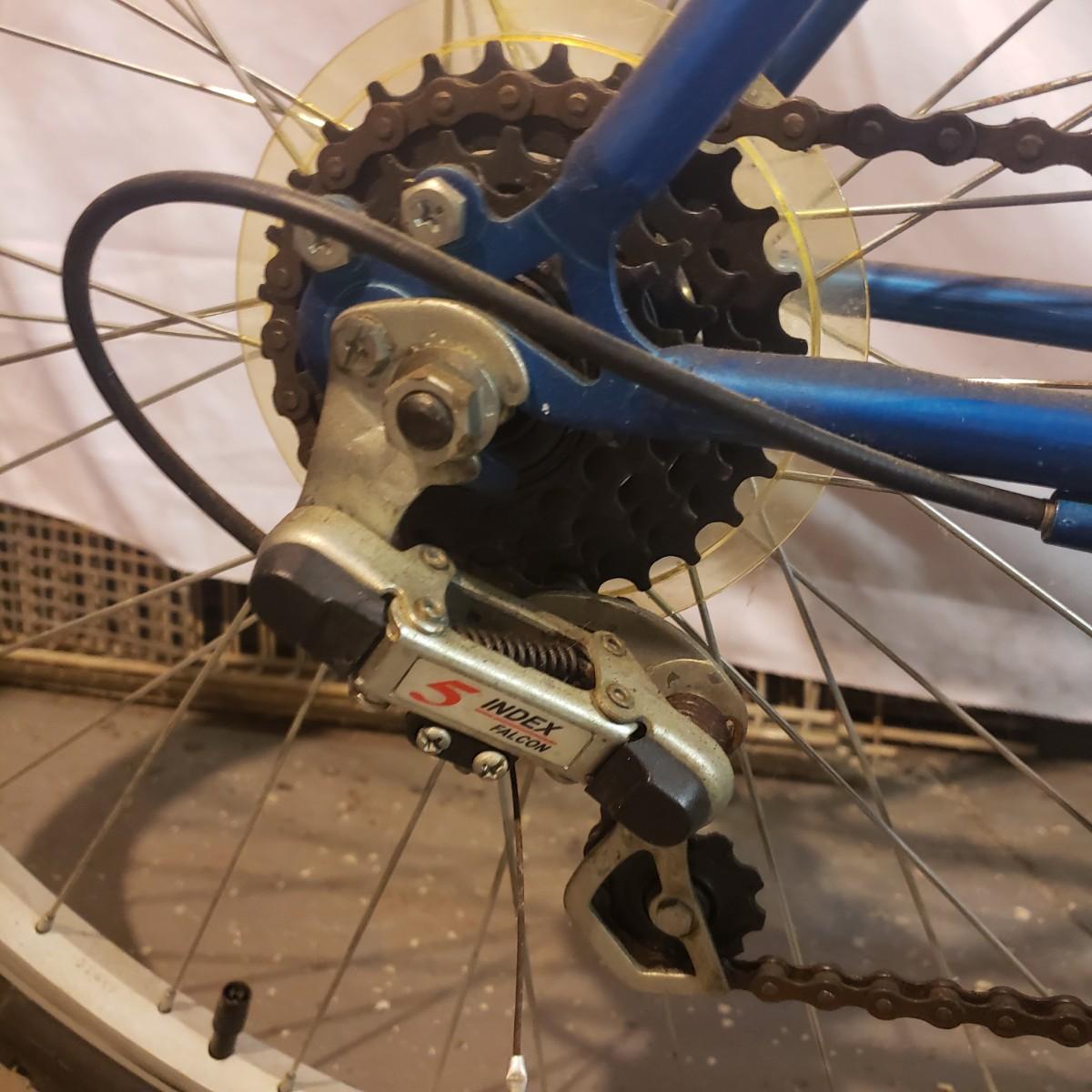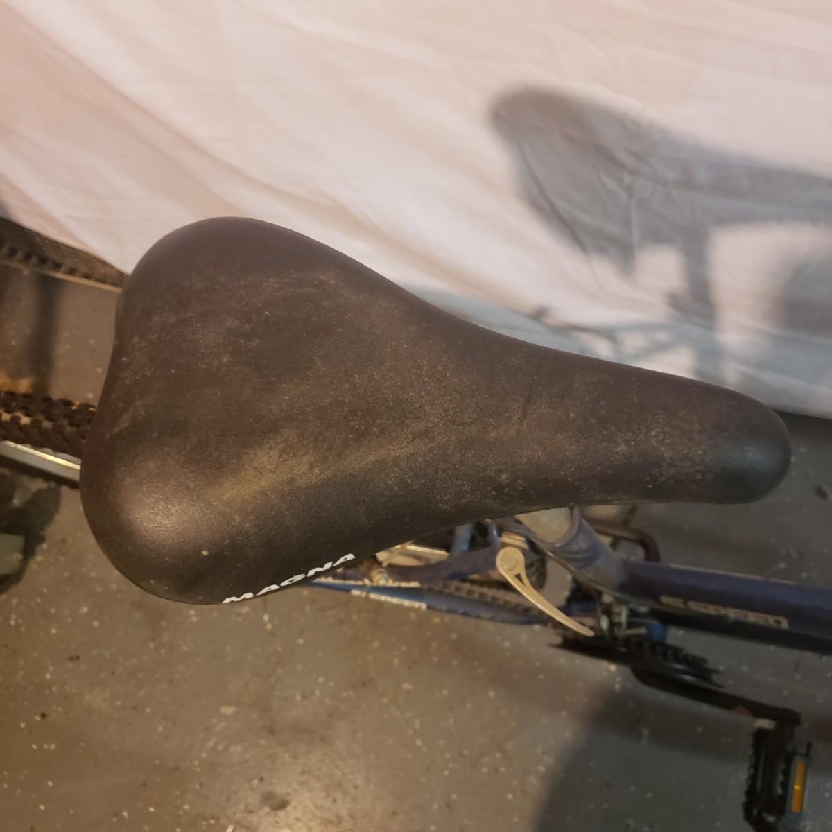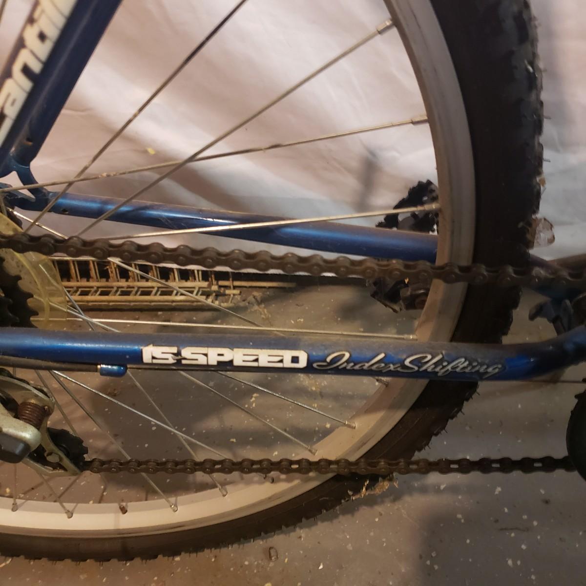 This is a Magna, Glacier Point 15 speed women's bike. The tread on the tires look barely used. The tires are a little flat, but we did not test by filling them up. The sticker says that it has cantilever brakes. The frame measures 18.5". The bike could probably use a tune up, as it has been sitting for a time.. See pictures for details.