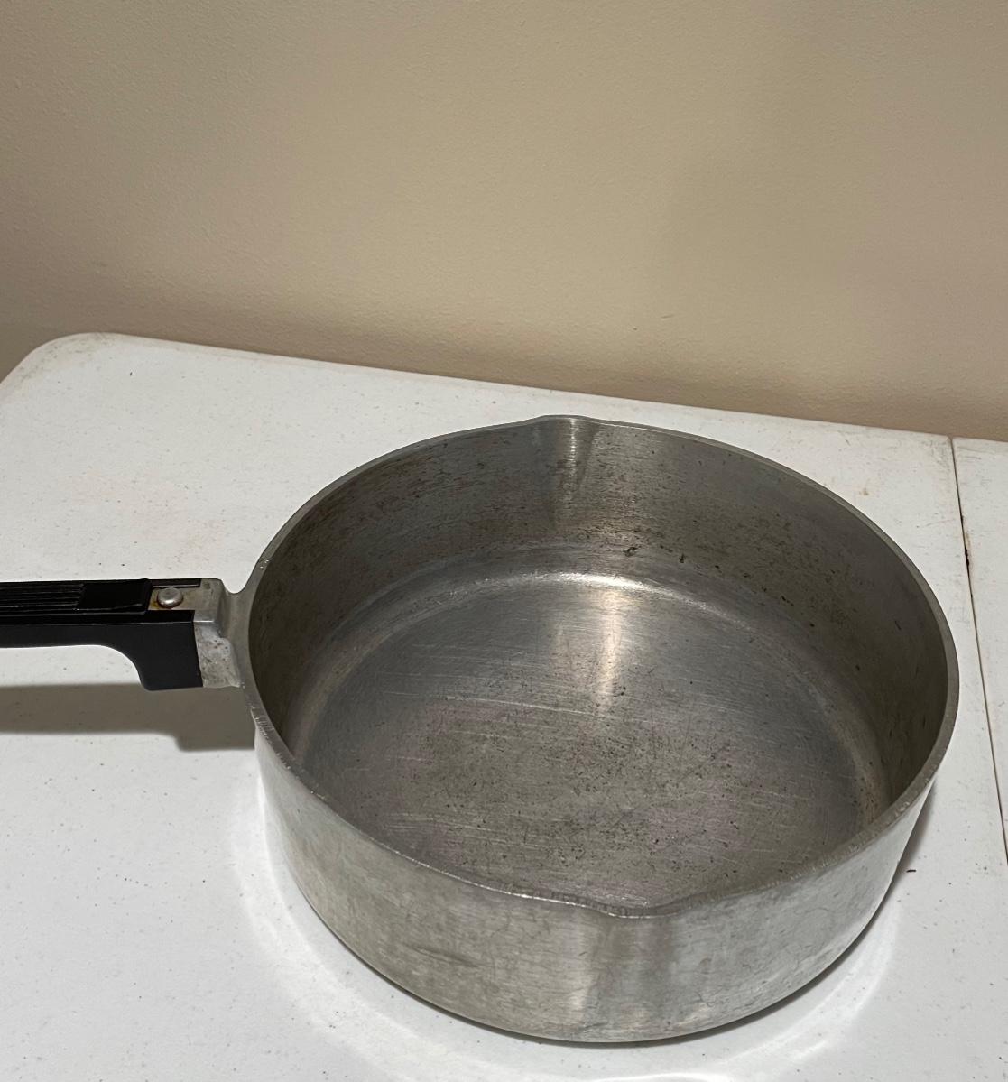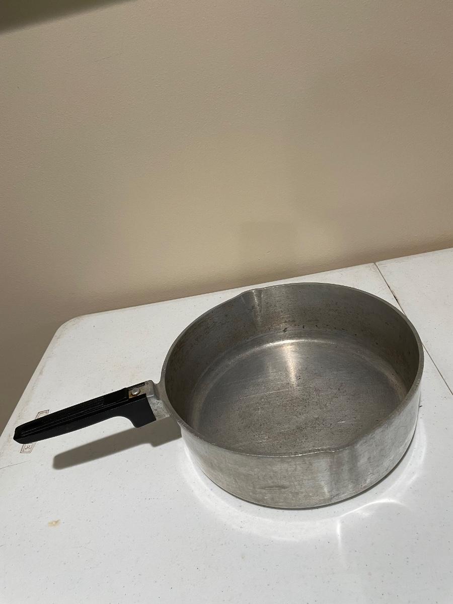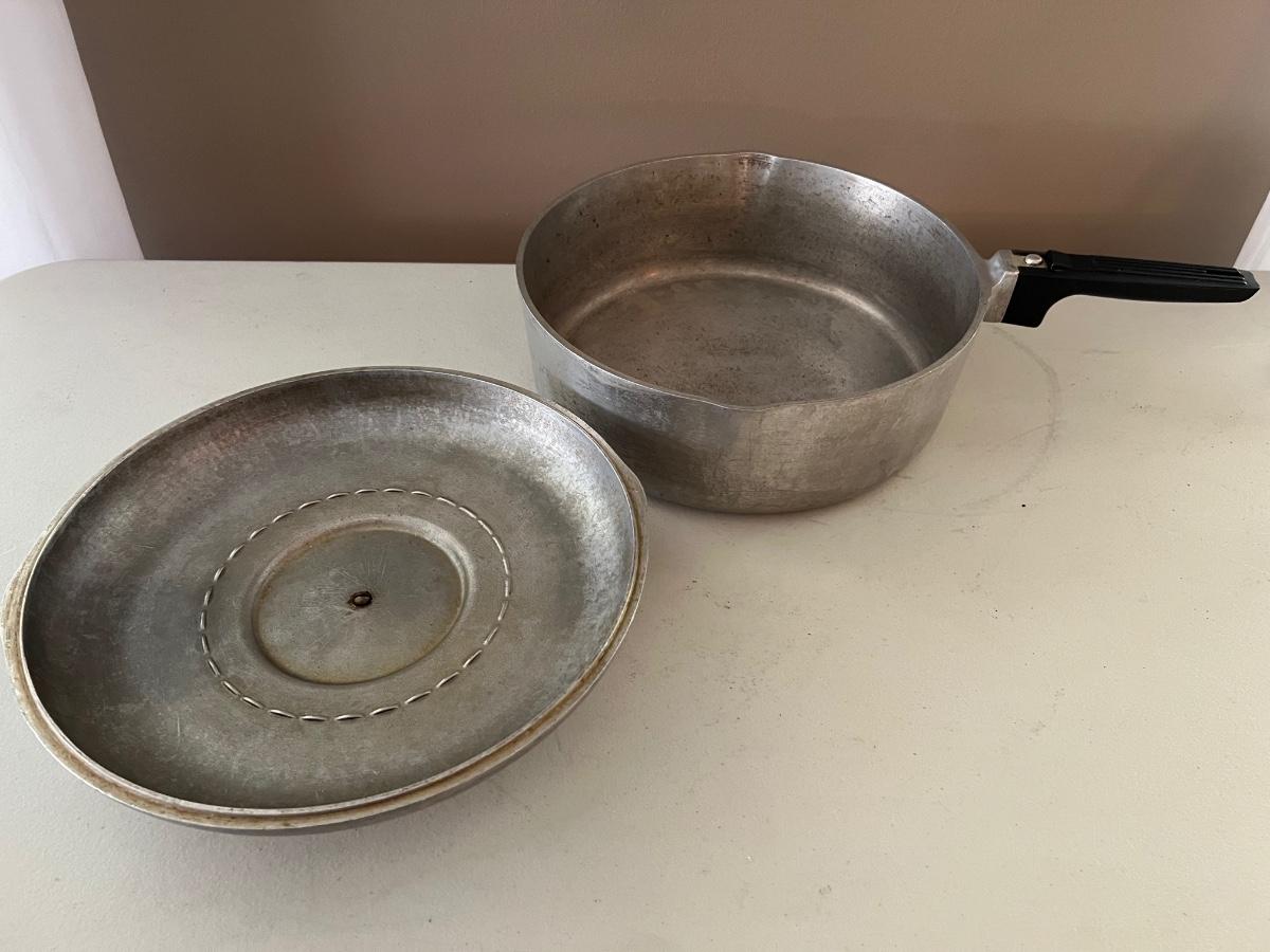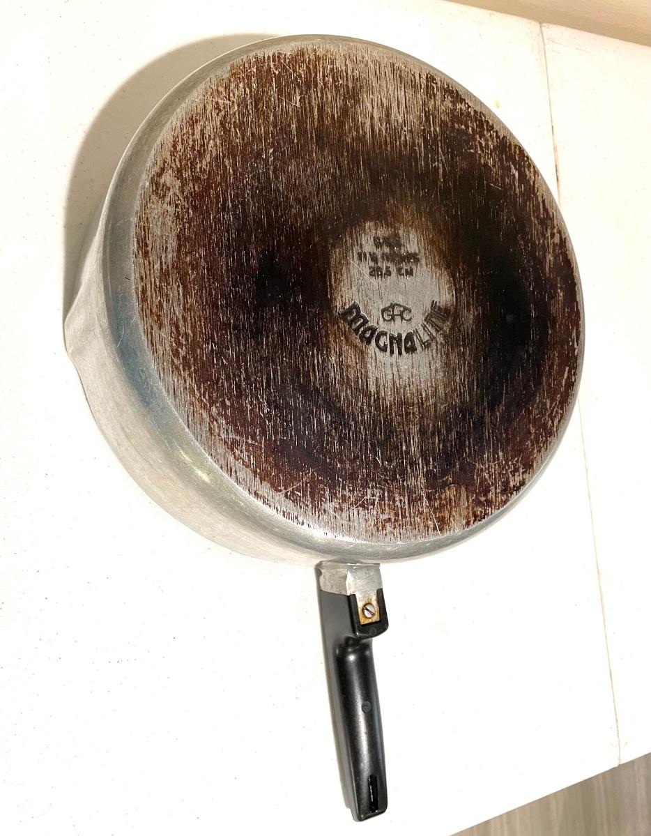 Magnalite 28.5 GHC 11 1/4" Deep Chicken Fryer Double Spout Pan Skillet w/Lid. Measures 4 inches deep.