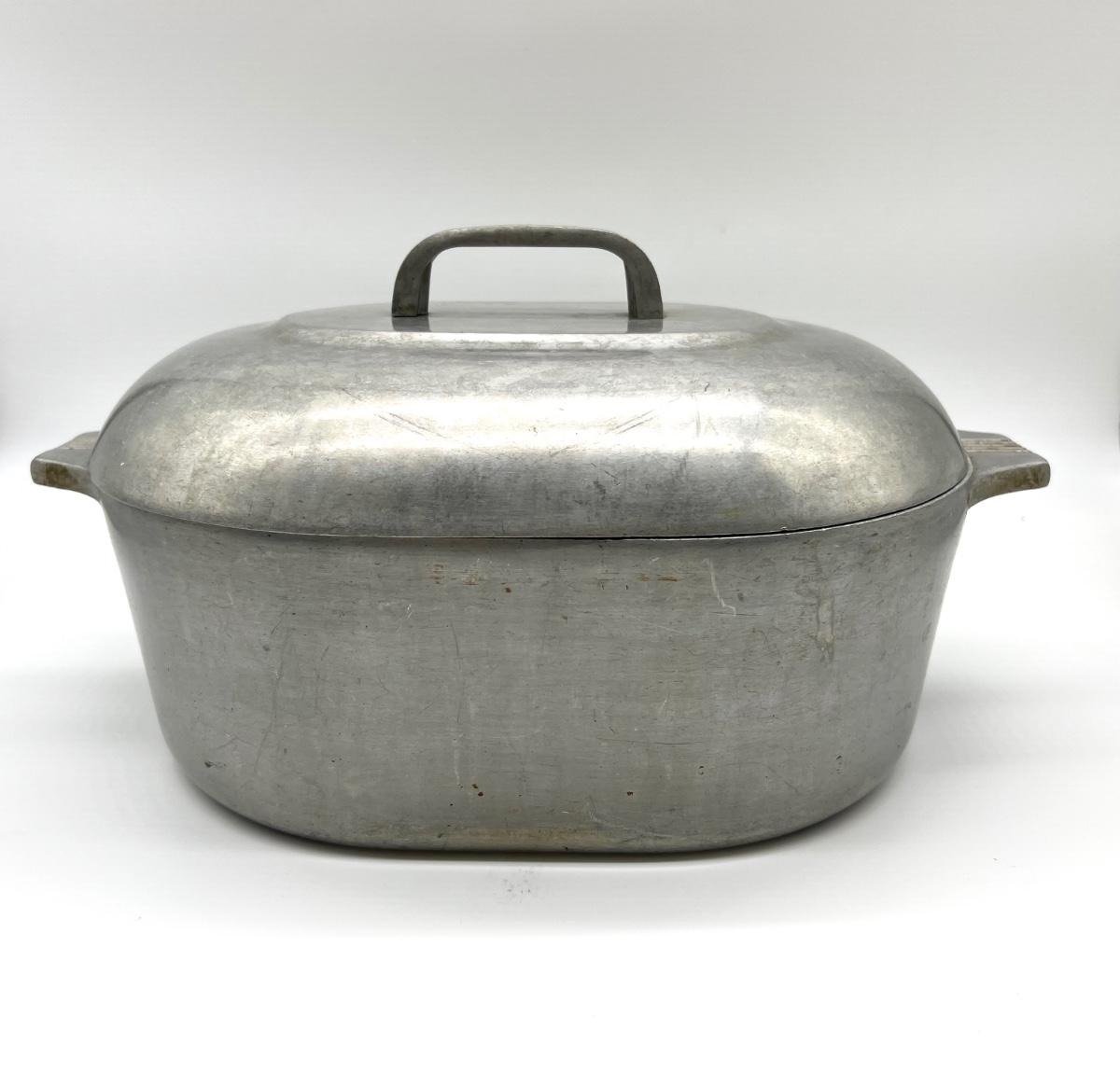 Vintage MAGNALITE GHC USA 6 Qt Oval Roaster. Measures 6 1/2 inches tall 15 inches wide. Pot itself 4 1/2 inches deep.