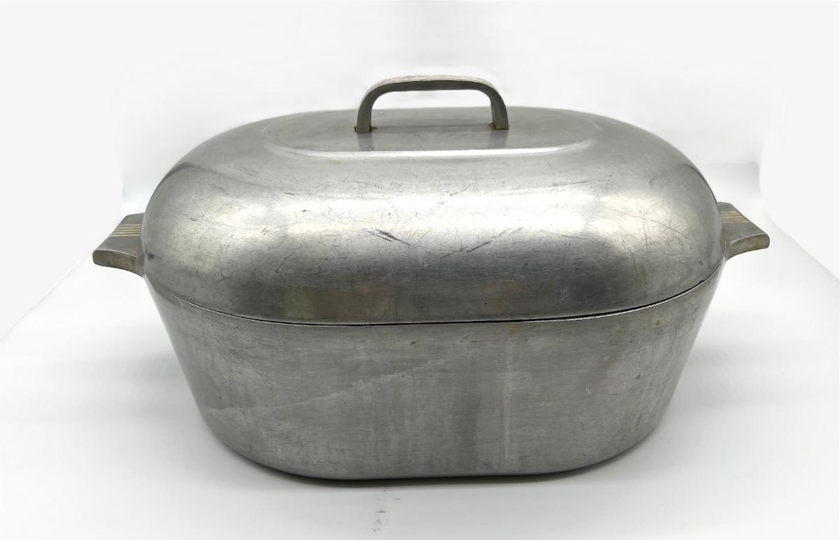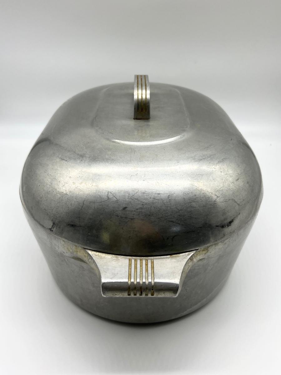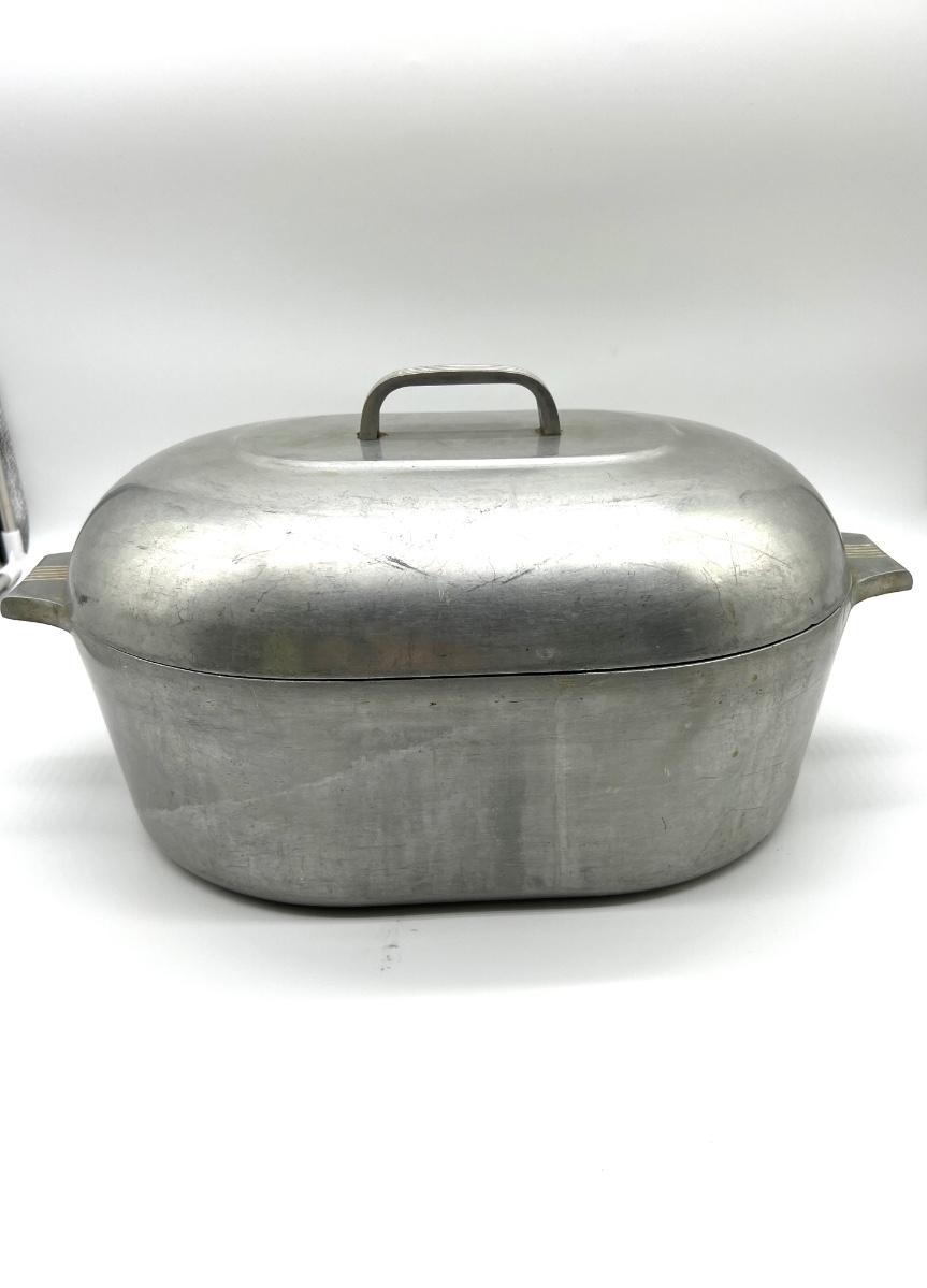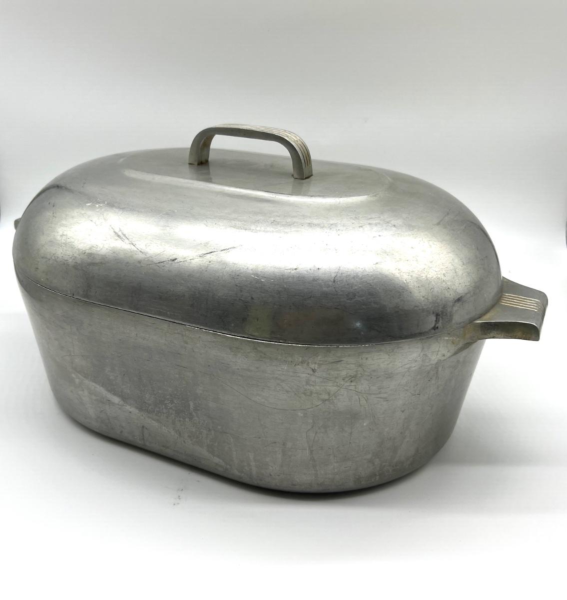 GHC Wagner Ware 13 QT Magnalite Oval Roaster. Measures 8 inches tall approximately 19 inches wide. Pot is 5 inches deep.