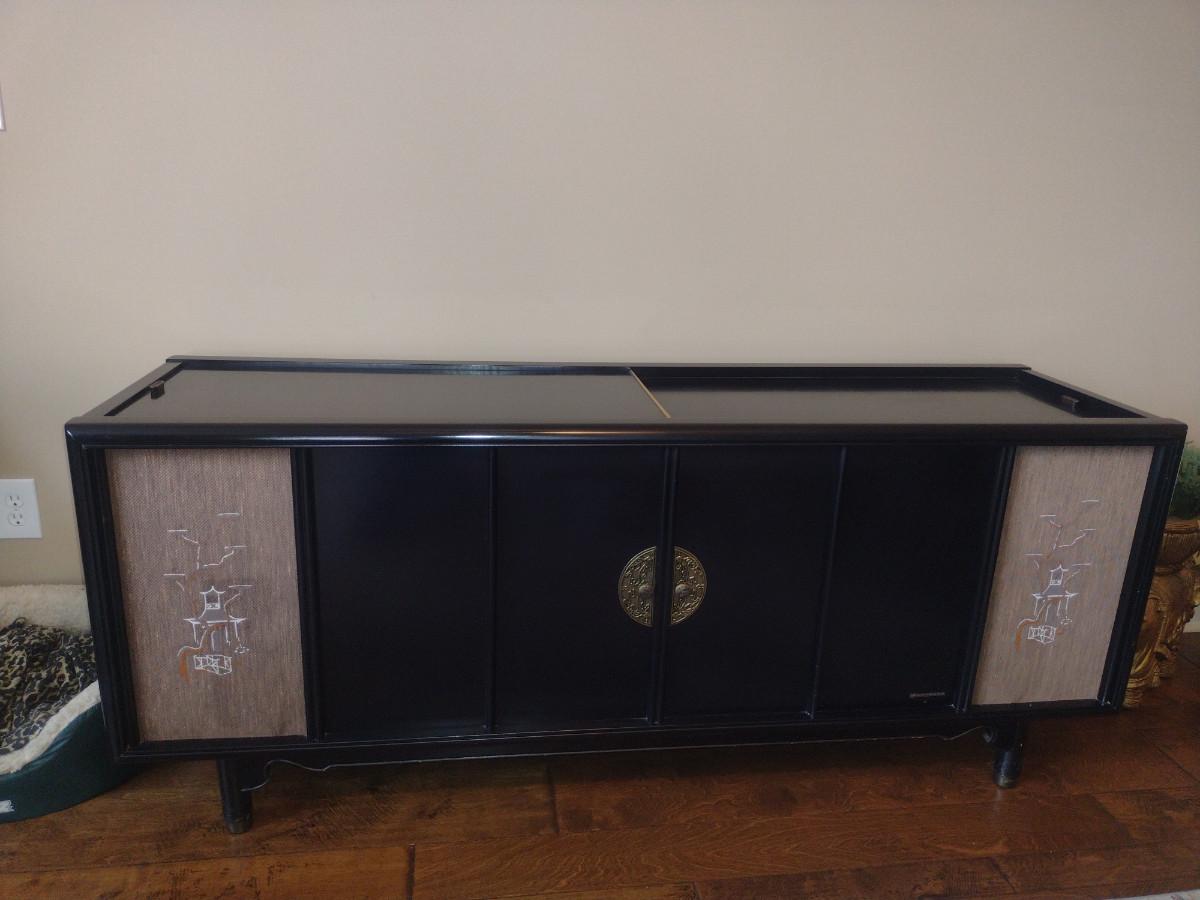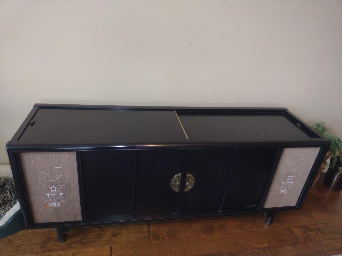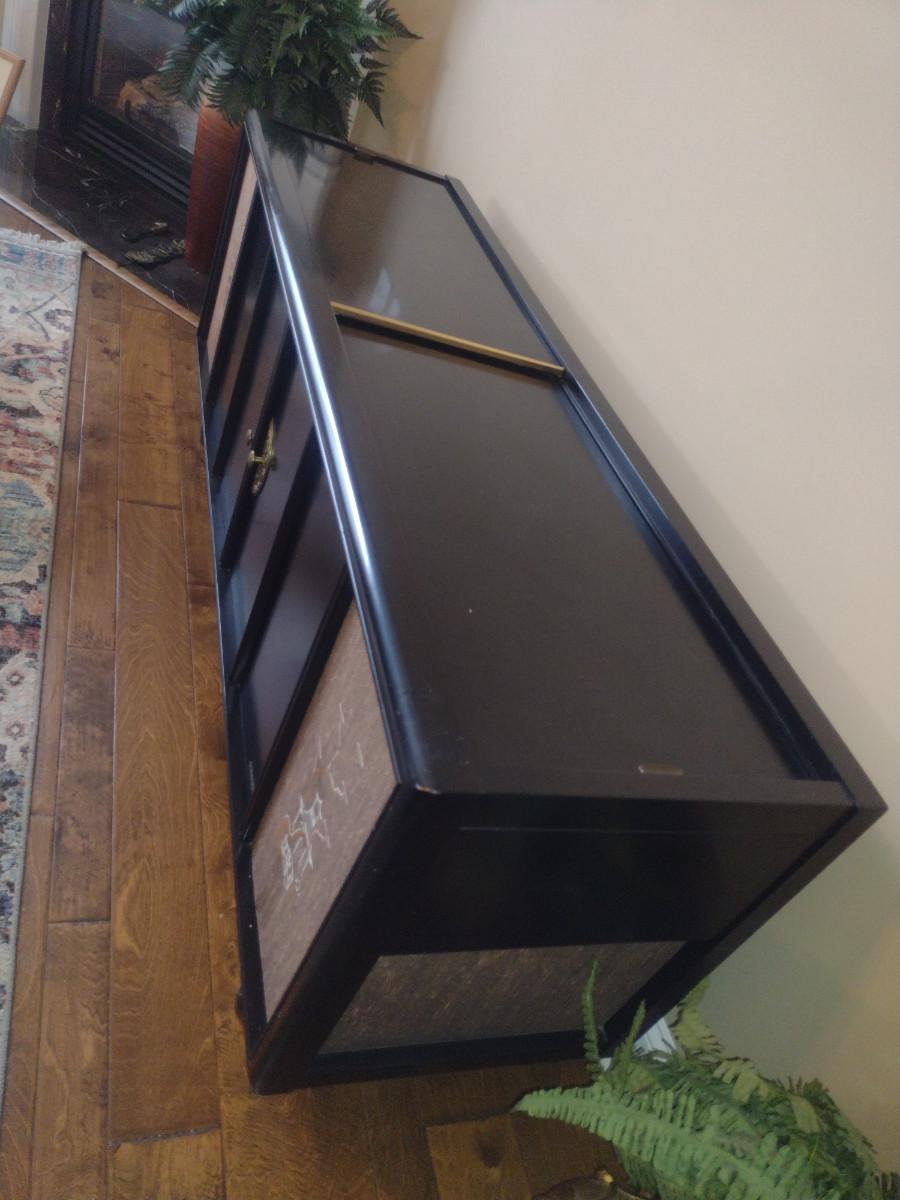Magnavox Astro-Sonic Stereo Console- AM/FM and Turntable. Model 1P3726. Approx 66" x 18 1/2" x 28" Tall. Item powers on. Speakers have static. Unable to make turntable function.