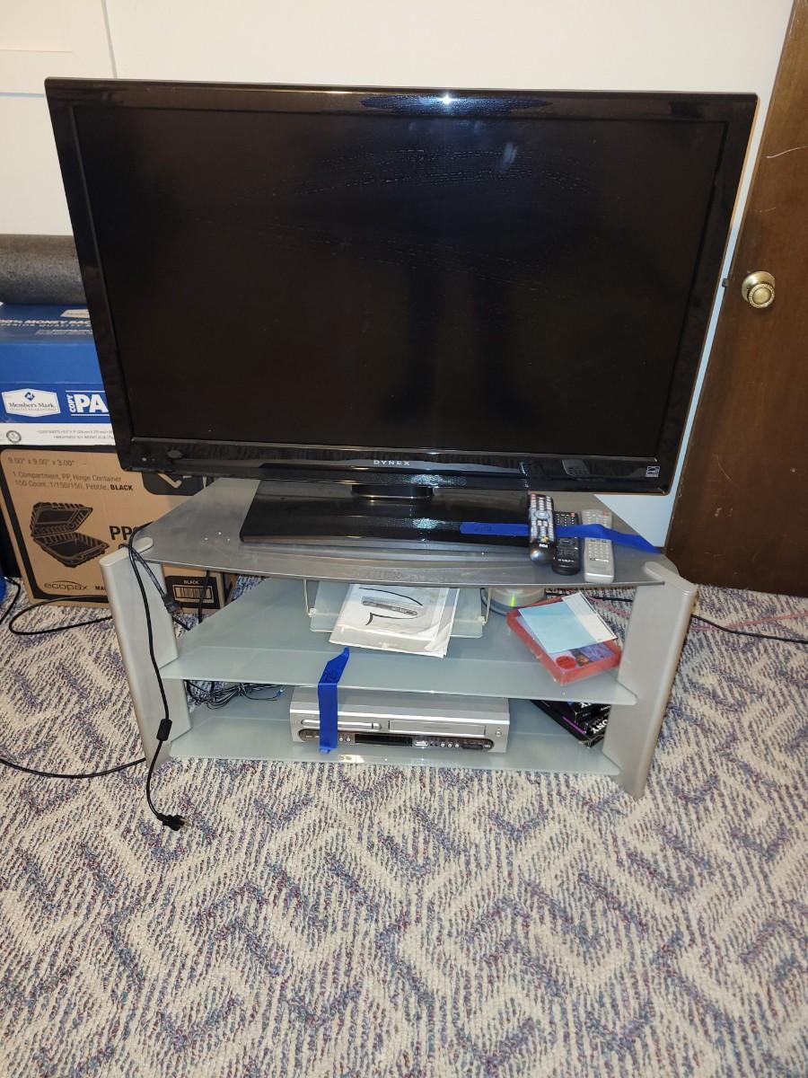 Magnavox dvd and vhs combo, dynex 42" TV and stand