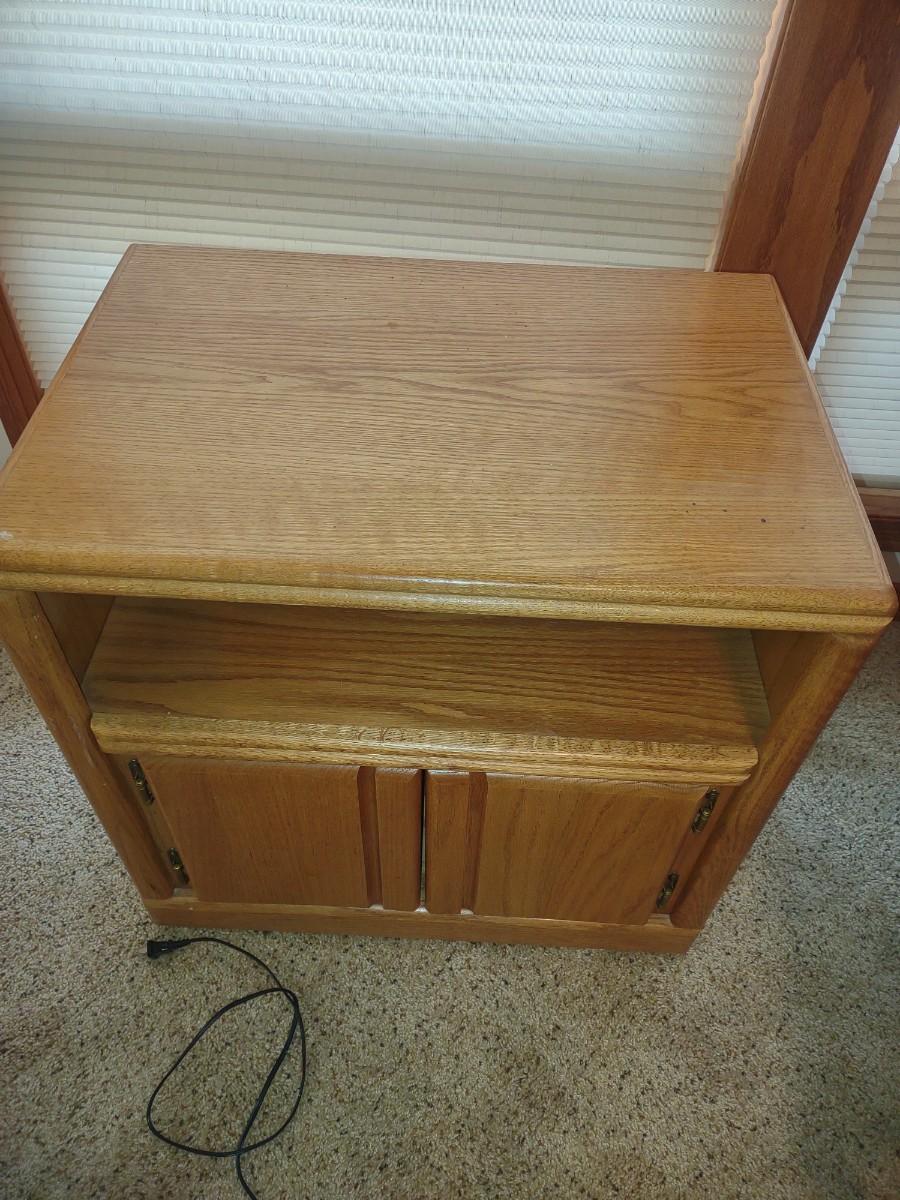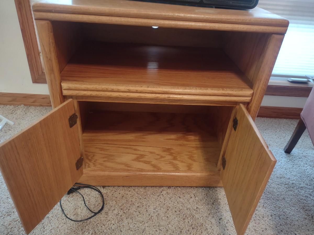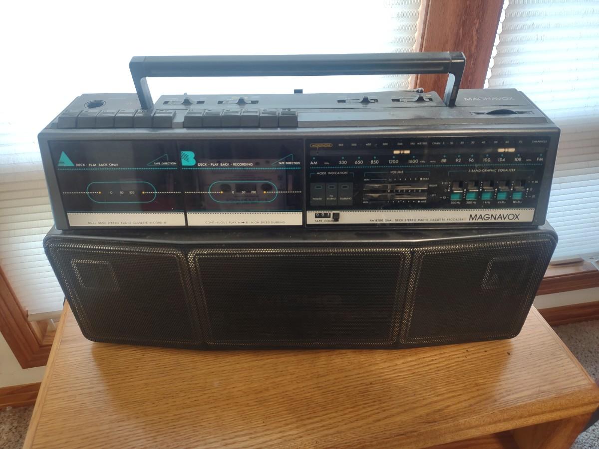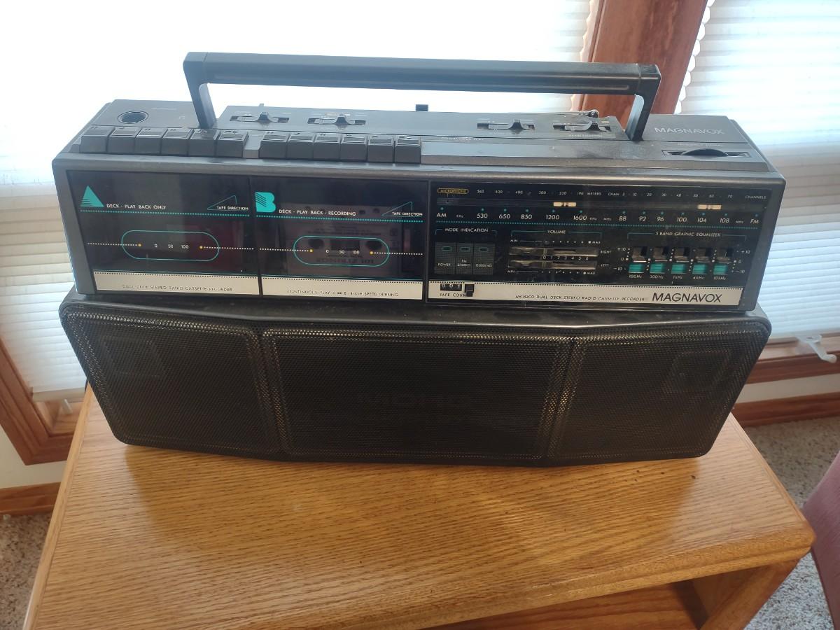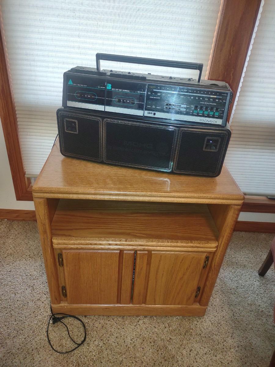 MAGNAVOX PORTABLE STEREO & CASSETTE PLAYER PLUS AN OAK TV STAND